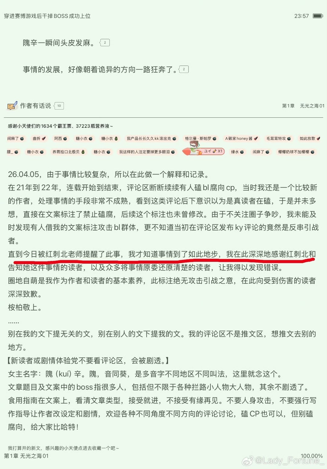 猛然想起,压死桉柏的最强有力的一根稻草,在赛博小说正文里给fzl道歉,是红刺北给