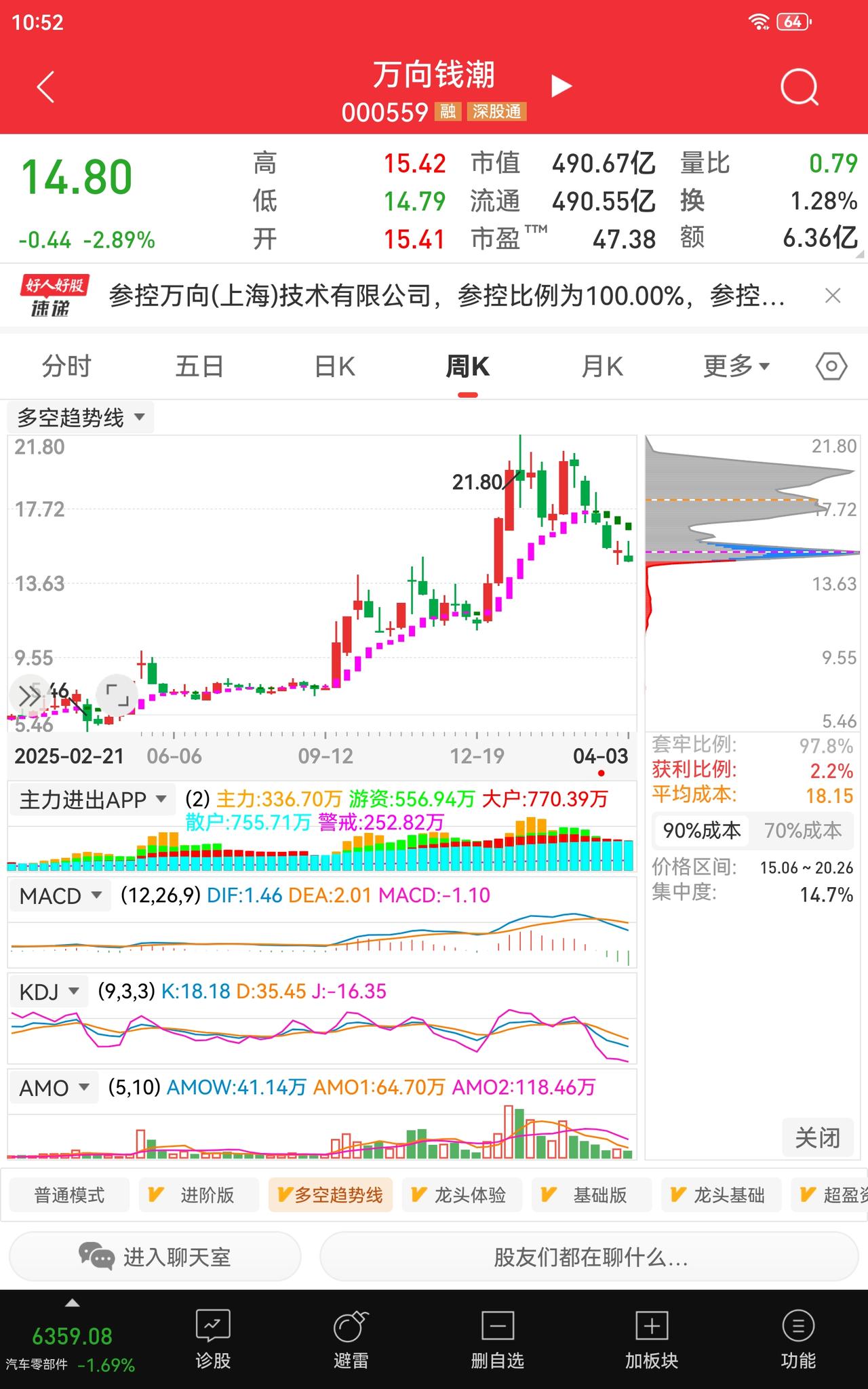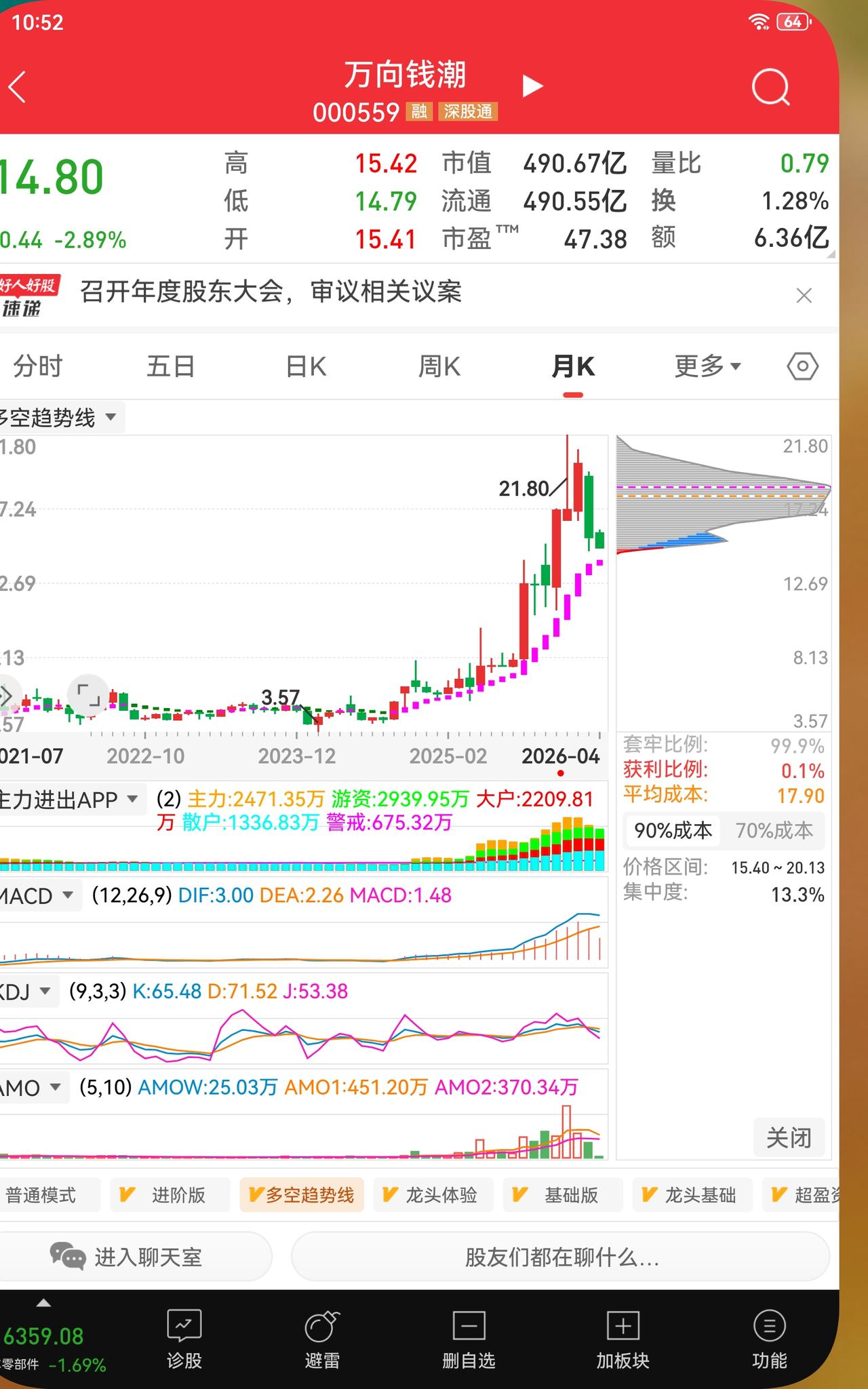 【深度复盘】万向钱潮(000559) 99.9%套牢盘,本文细说该股的低点、拐点
