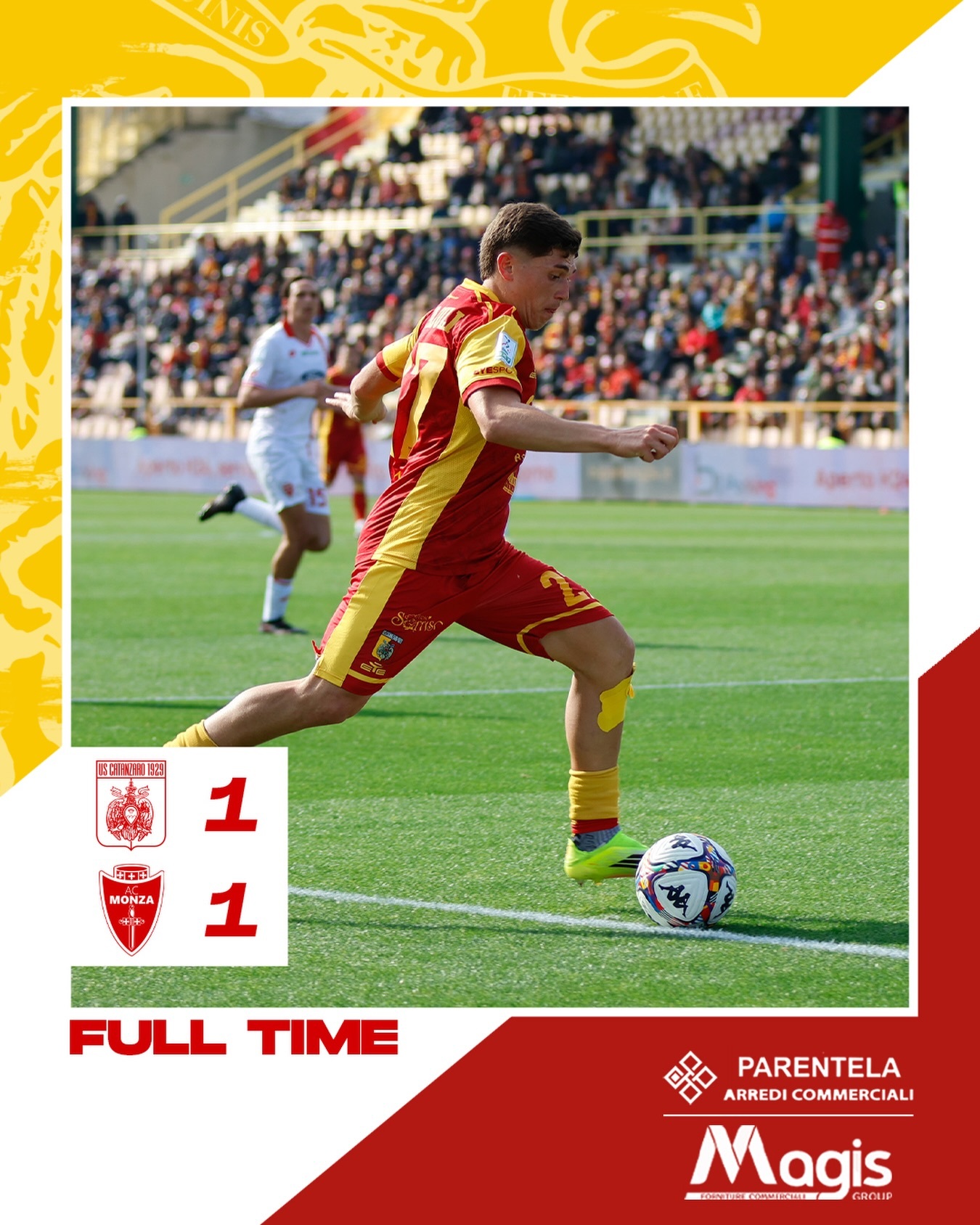 意乙 卡坦萨罗主场1:1蒙扎队,利贝拉里🇮🇹首发出场67分钟。