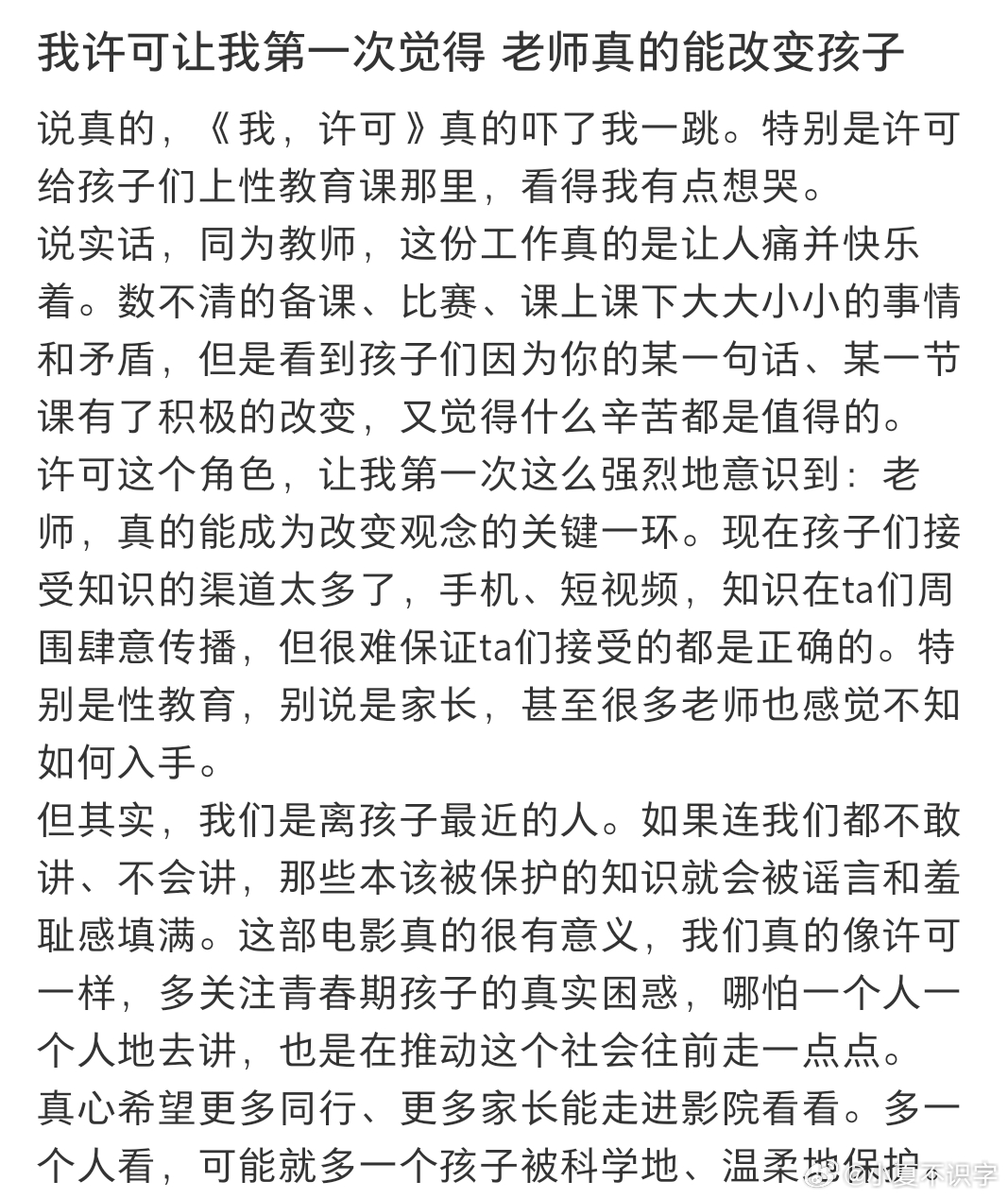 我当小学老师就许可这样 文淇把许可演得太绝啦!疲惫时的眼神空洞,温柔时的嘴角上扬,倔强时的眉头紧锁,每一个细节都处理得恰到好处,让我仿佛看到了自己。