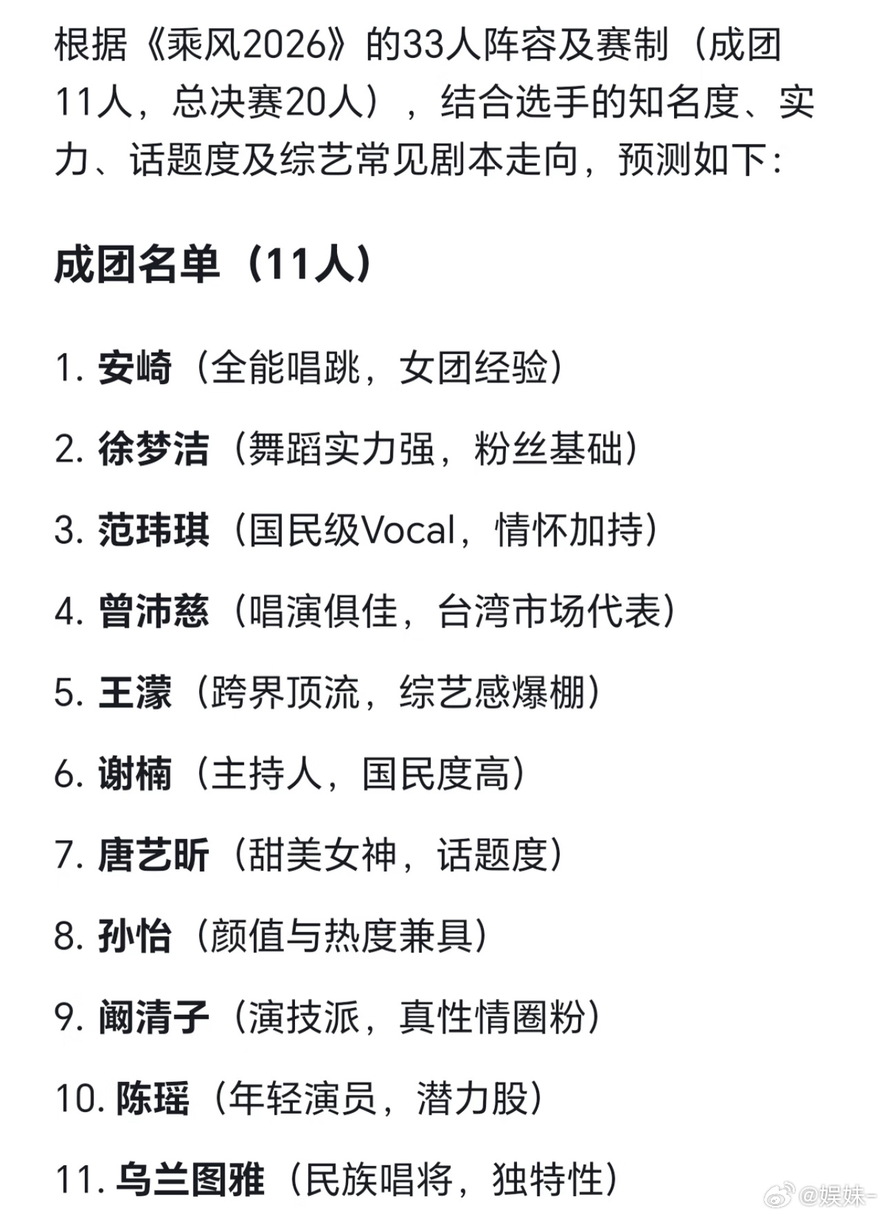 乘风2026一公组队张月、陈瑶、徐梦洁一组曾沛慈、黄灿灿、淡淡一组乌兰图雅、者来