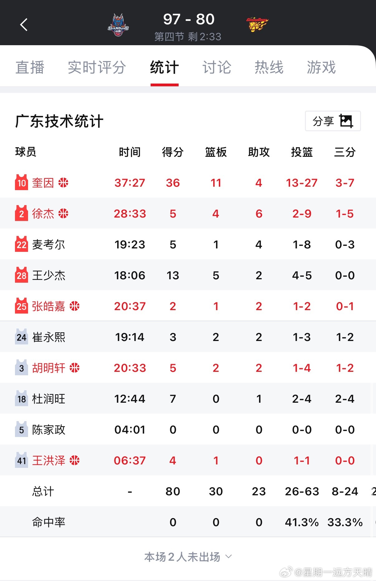 山东男篮vs广东男篮还有3分钟,邱彪上全华班了~这是恶心杜指导吗?CBA