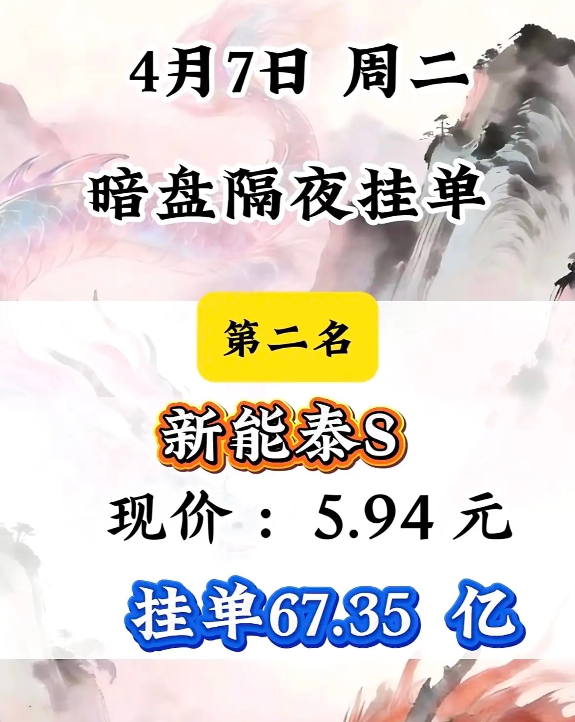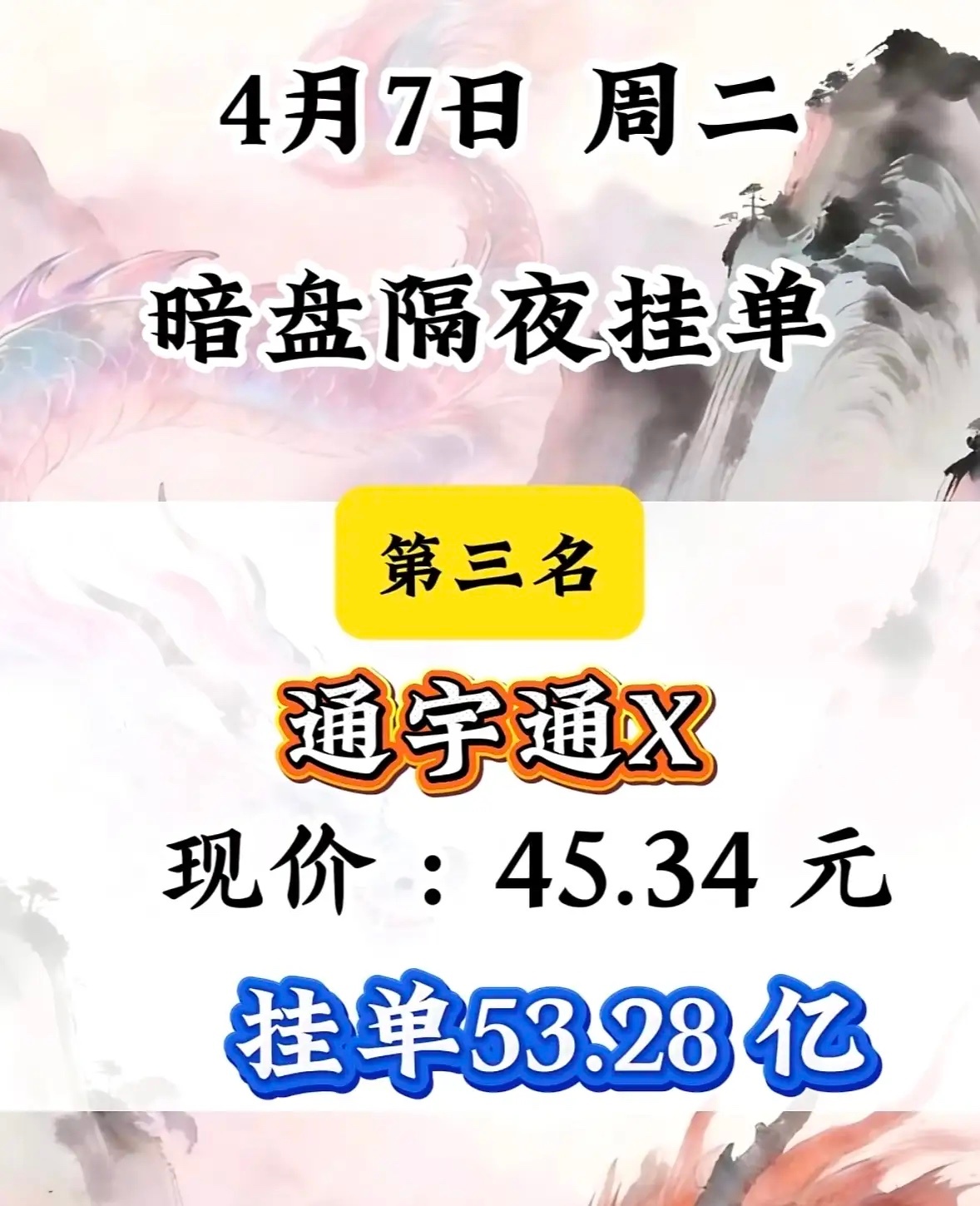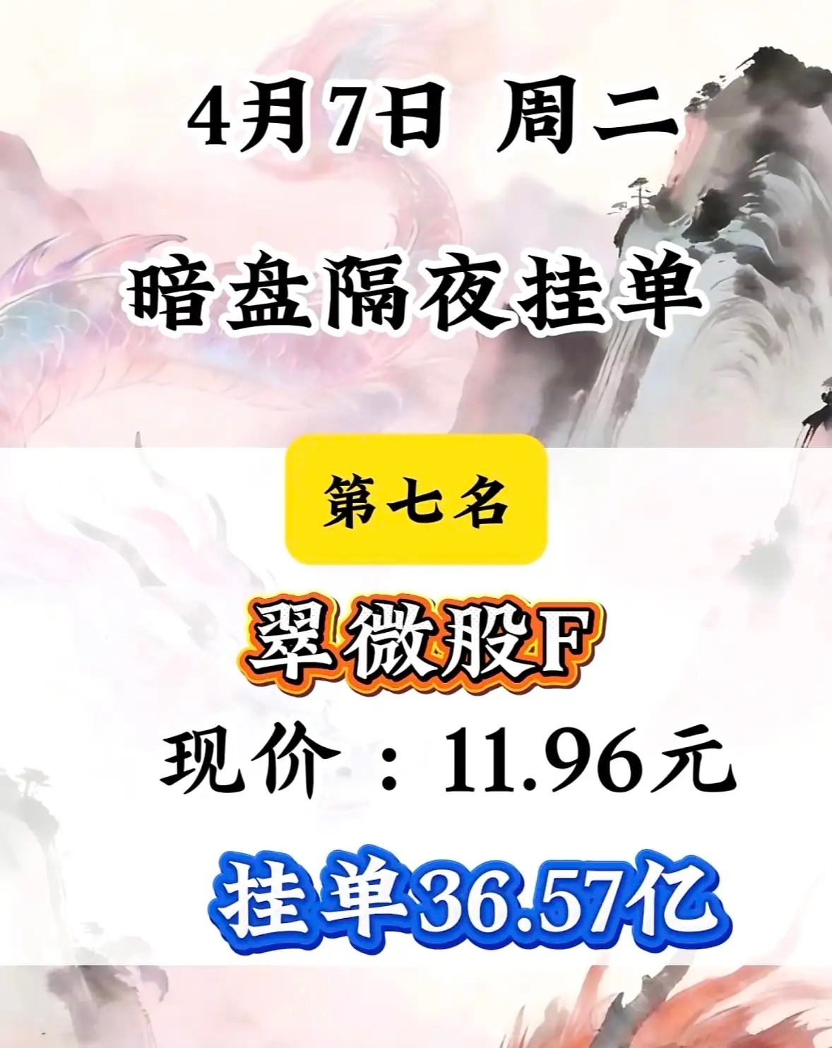 4月7日周二暗盘隔夜挂单排行榜揭晓