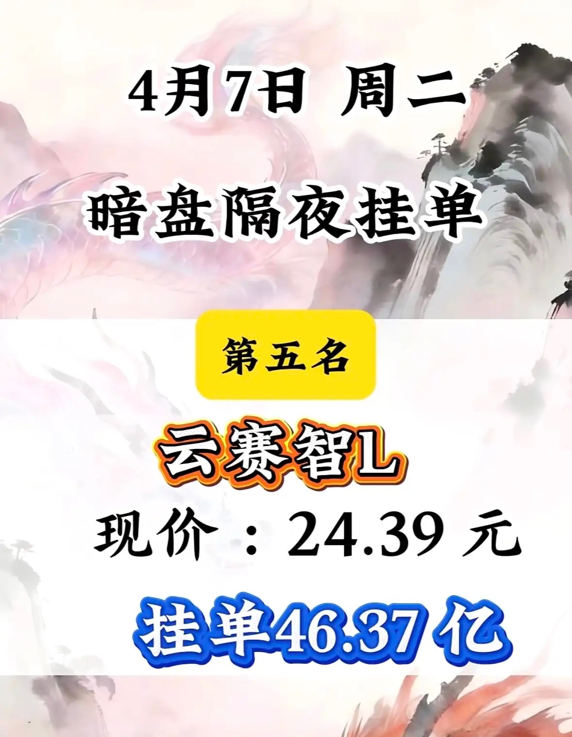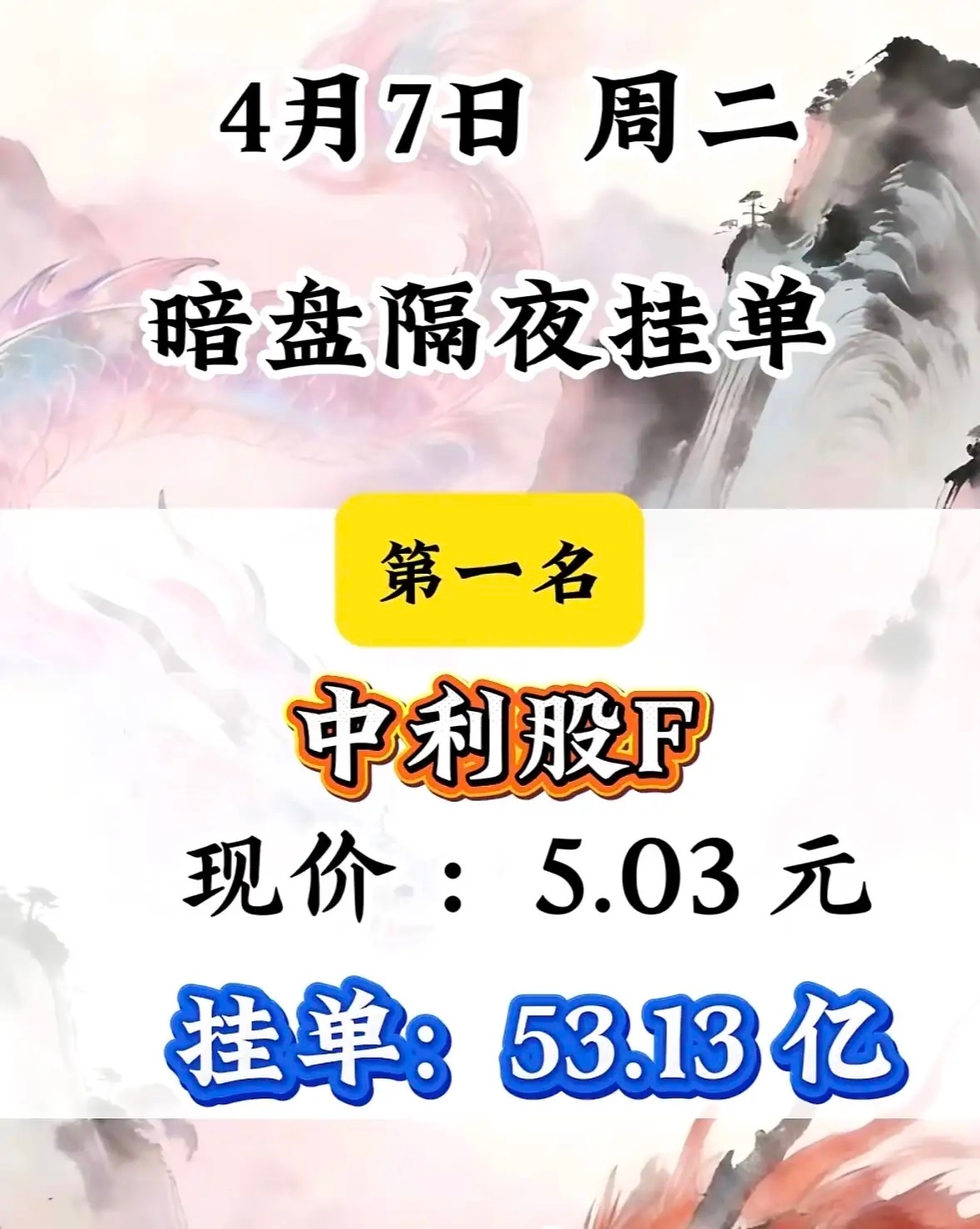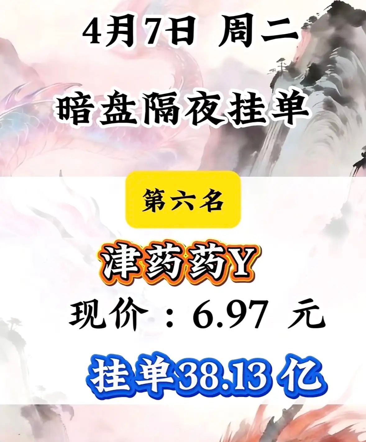 4月7日周二暗盘隔夜挂单排行榜揭晓