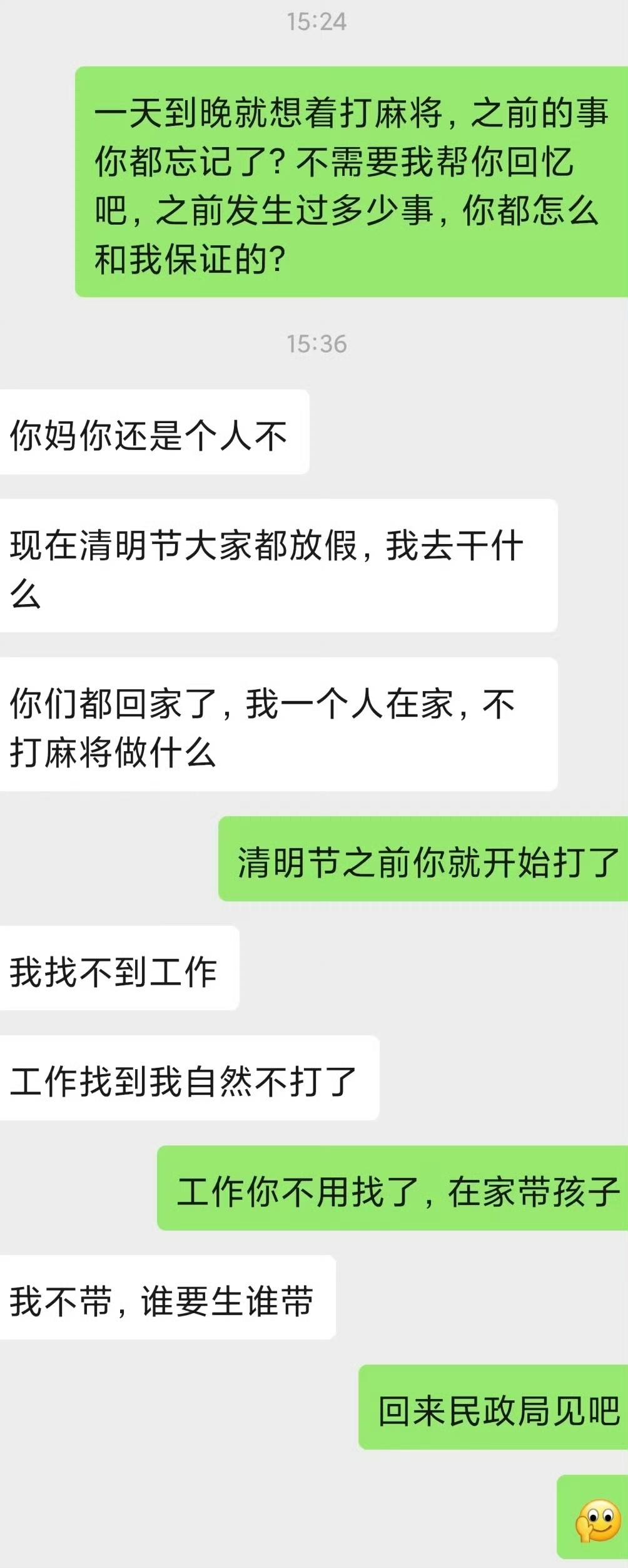 结婚两年的男子,抱怨老婆打麻将,更是怀疑老婆和牌友搞暧昧,心里有点纠结这个婚姻还要不要持续?房子和车子这些财产怎么保全? 男子和他老婆恋爱一年,结婚两年,生完孩子后,老婆就结扎了,放飞自我。孩子扔给公公婆婆带,她自己也不找班上,天天去麻将馆打麻将,男子和老婆争吵过,他老婆就收敛了一点。每个星期只去一次,但是过一段时间,老婆牌瘾又发了,又恢复到每周天天准时去麻将馆报到。 偶然发现老婆的手机上和麻将馆的牌友有各种互动的暧昧信息,男子去质问。老婆连忙就把信息删掉了。 有好多次老婆都是凌晨一两点就回来。按照往常的习惯,她都会回来看一会电视。可是有几次回来后都是马上进入卫生间洗澡,洗内裤。因为她是一个不太讲卫生的女人,以前洗完澡是绝对不会把内裤也洗掉的,都是等到实在没有内裤穿了才会去洗。男子从这个细节判断,老婆心里面肯定有鬼。只是现在没有抓到证据。 在这次过清明节,他老婆提出想回娘家过清明。男子同意了。于是男子就带着孩子回了老家。可是男子翻看家里的监控,却发现女子并没有回娘家。每天依然是凌晨一两点才回家。都是在找借口,其实仍然在打麻将。男子现在非常的纠结,和老婆不知道能不能过得下去。他更担心的是价值 130 万的房产,还有买给老婆的 20 万的车。