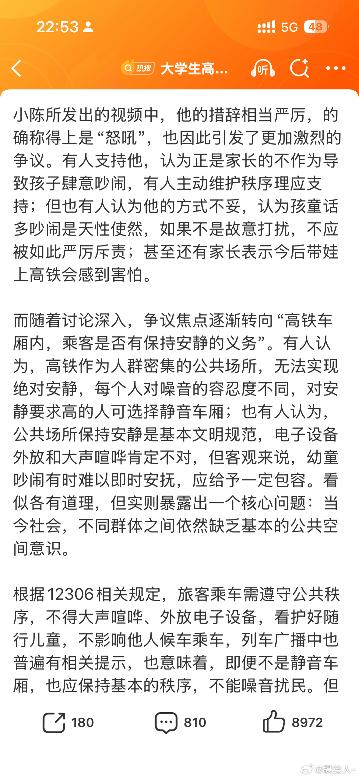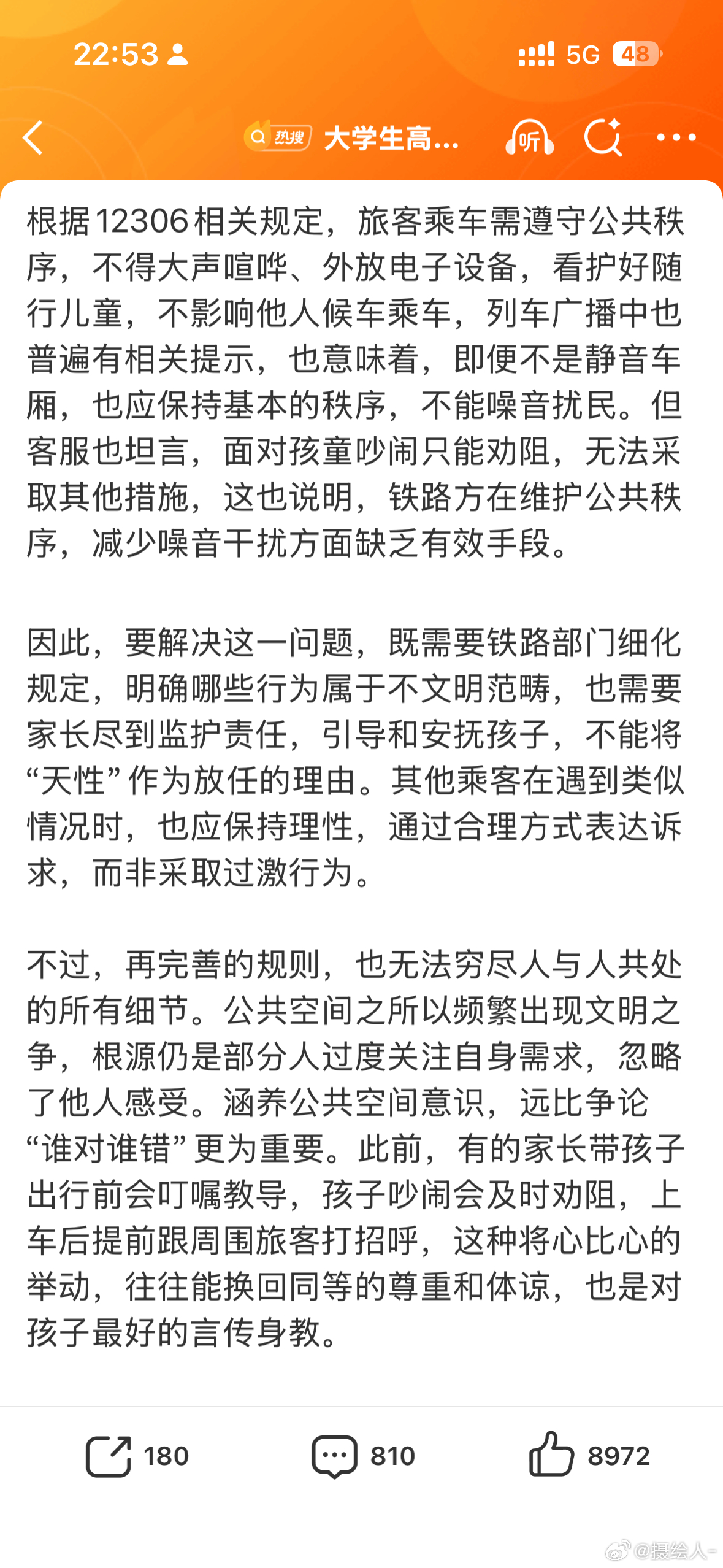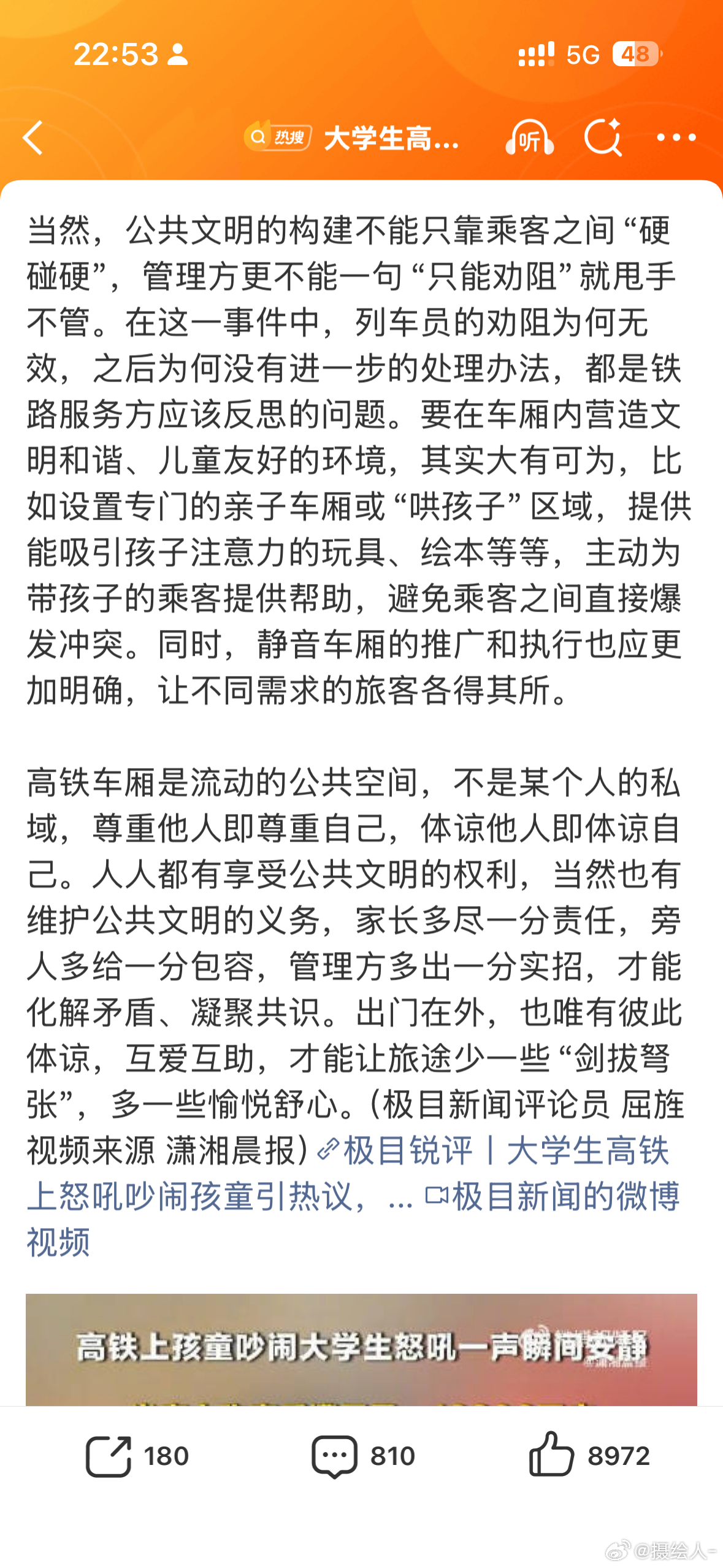 大学生高铁怒吼熊孩子到底是谁错了感同身受了,公共场所不是爱咋滴就咋滴,也要顾及别