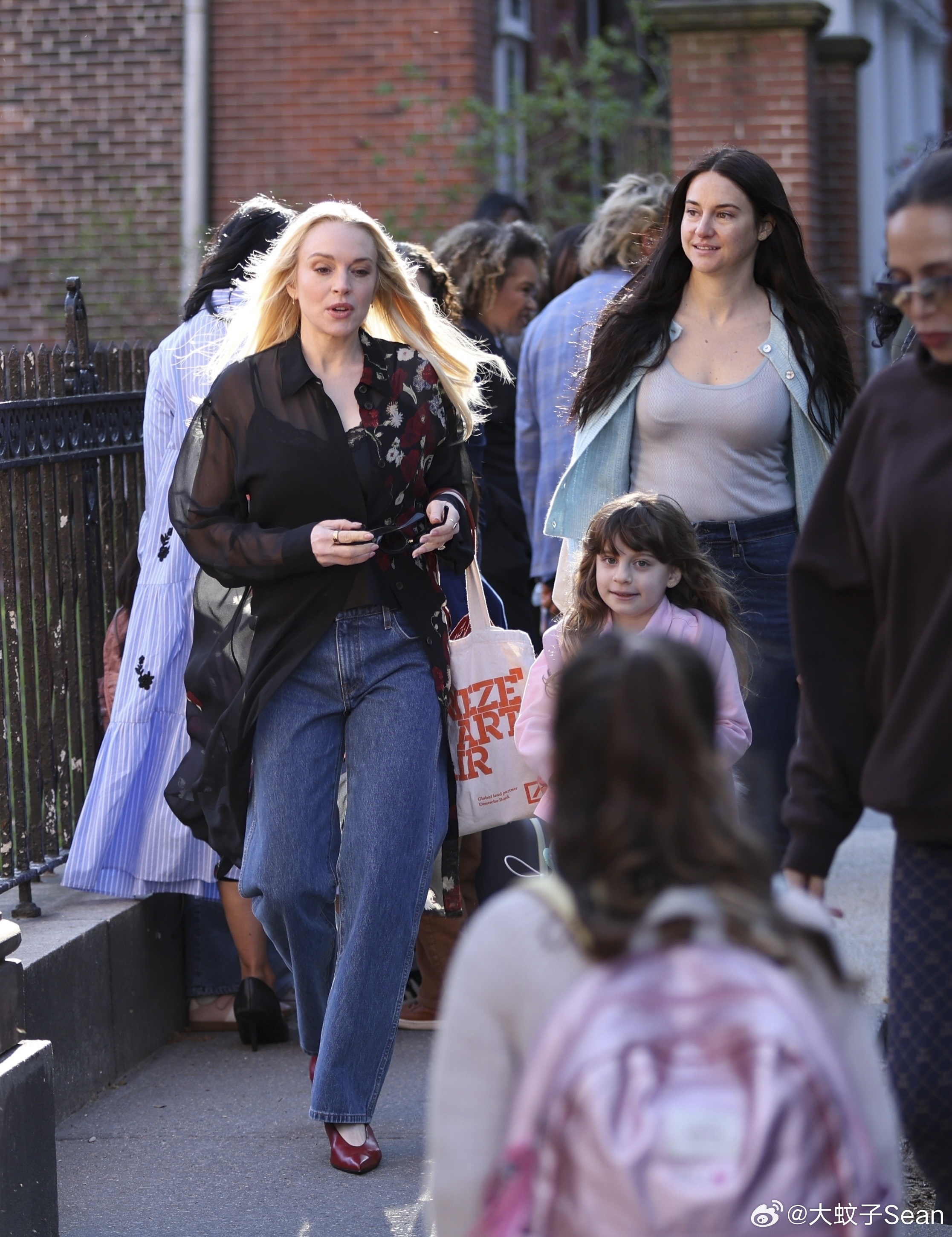 Lindsay Lohan林赛罗韩继续在纽约为新剧《count my lies》进行拍摄,再一起和Shailene Woodley拍摄接送“娃”的戏份