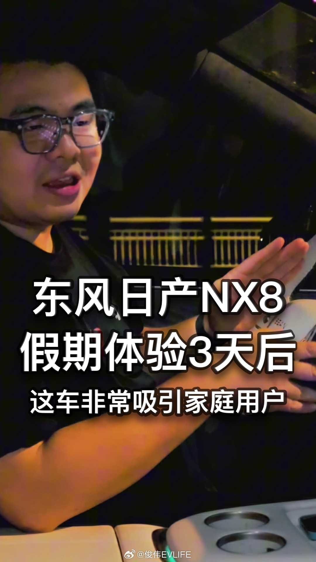 东风日产NX8体验小视频横竖版封面也做好3天假期NX8短暂体验主要把精力花在「陪伴」上并没有过度拍摄毕竟铝合金小朋友才16个月开着NX8带着他到底玩耍才是正事等之后有机会还会借这车进行深度体验到时候就有你们想看的5C充电速度多少辅助驾驶表现怎么样等等近期广汽丰田和东风日产两家合资车企同时发力看看 4.8 在价格上有没有惊喜 💪