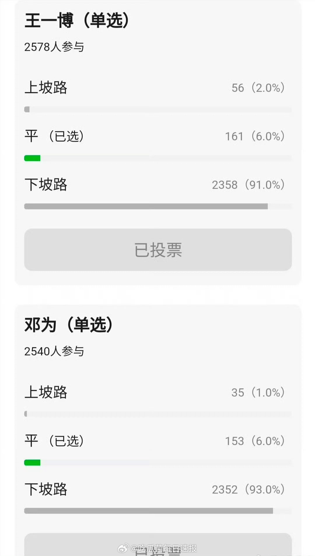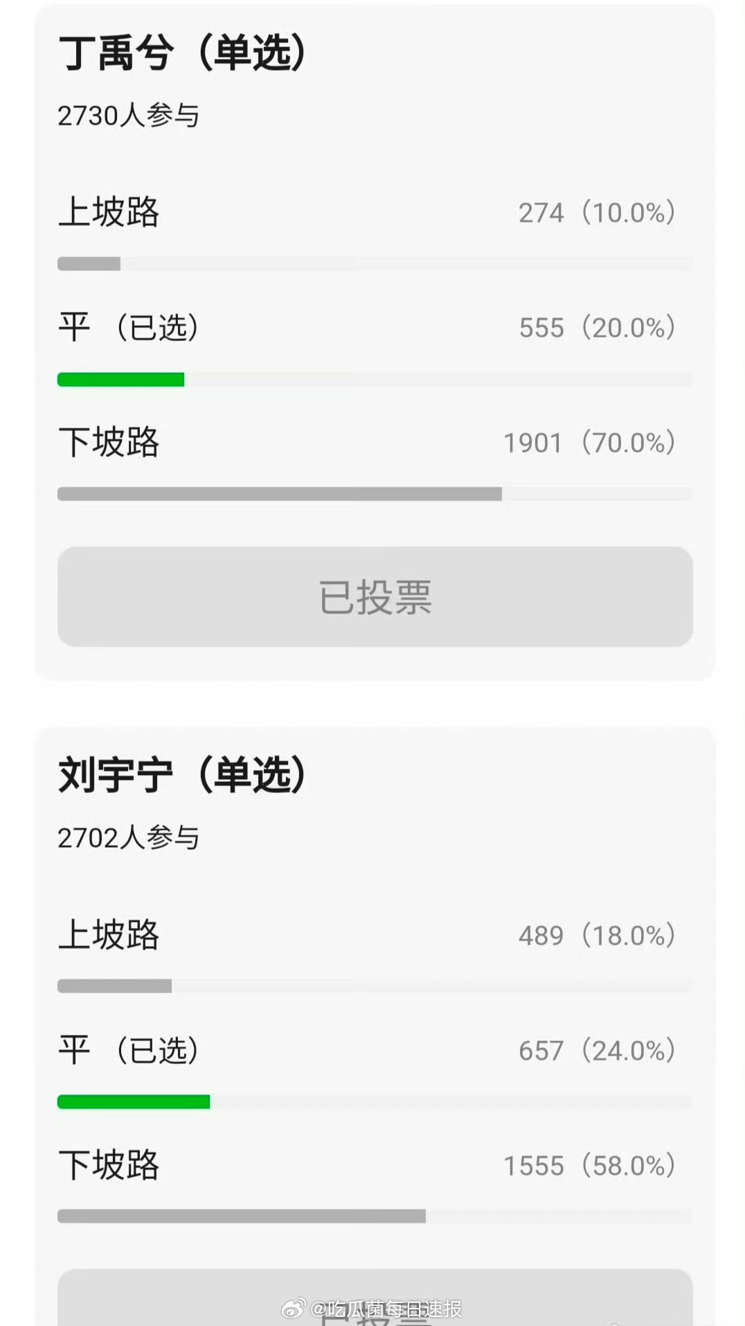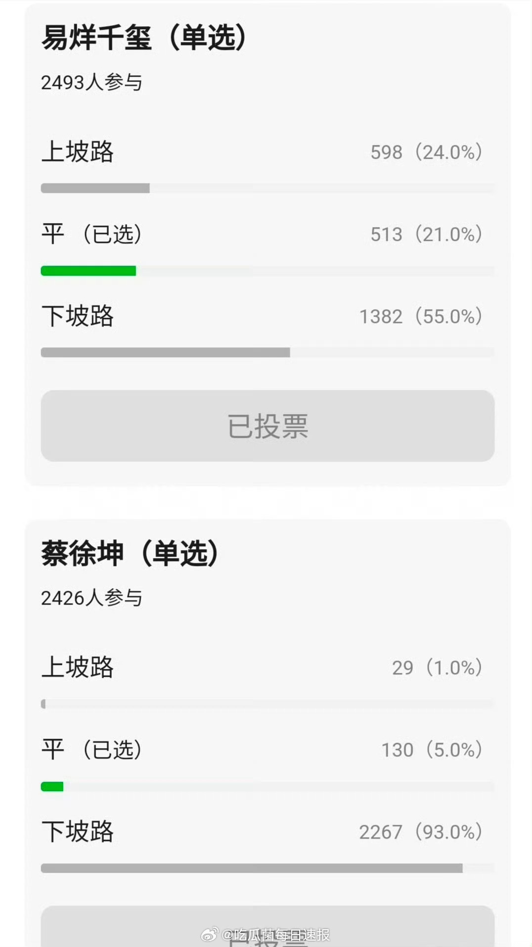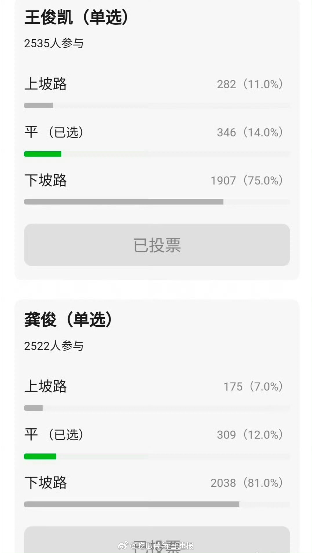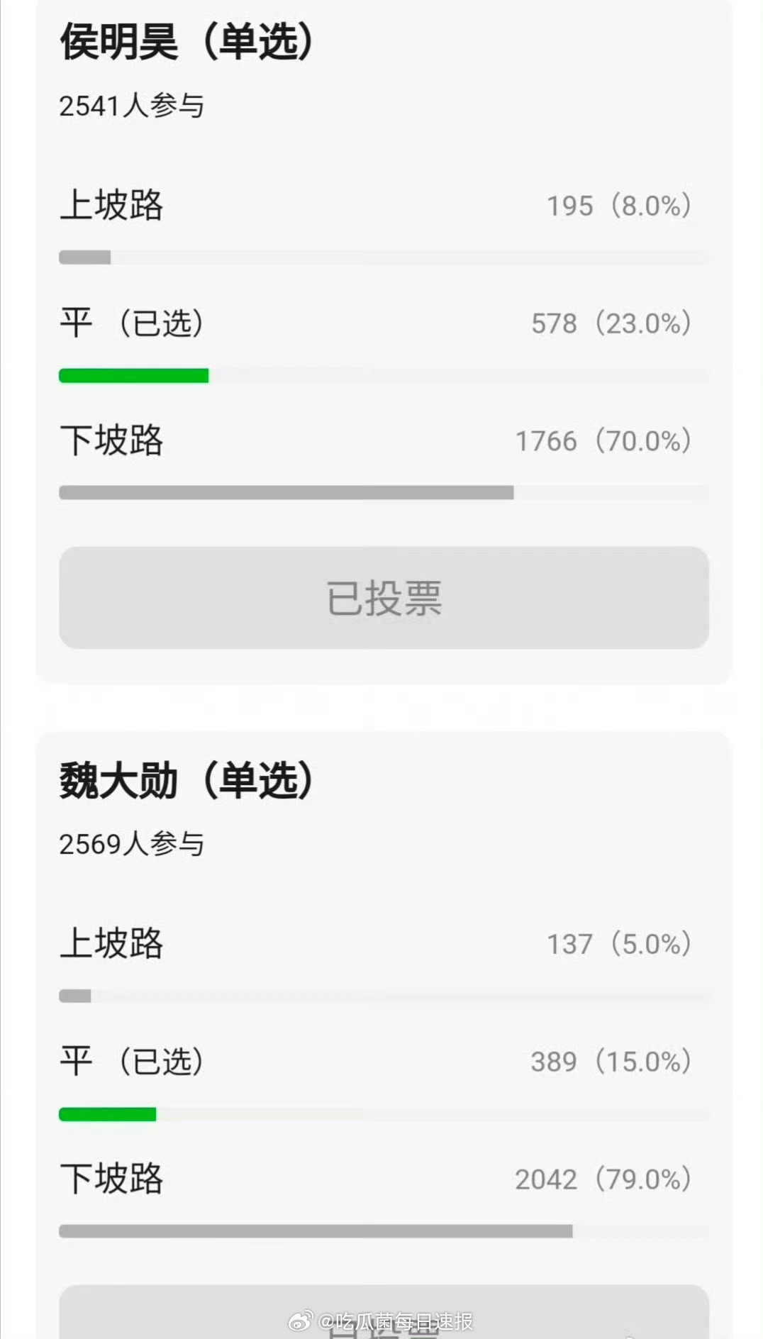 网友给近些年的内娱线上男星演艺事业投票,全员在走下坡路
