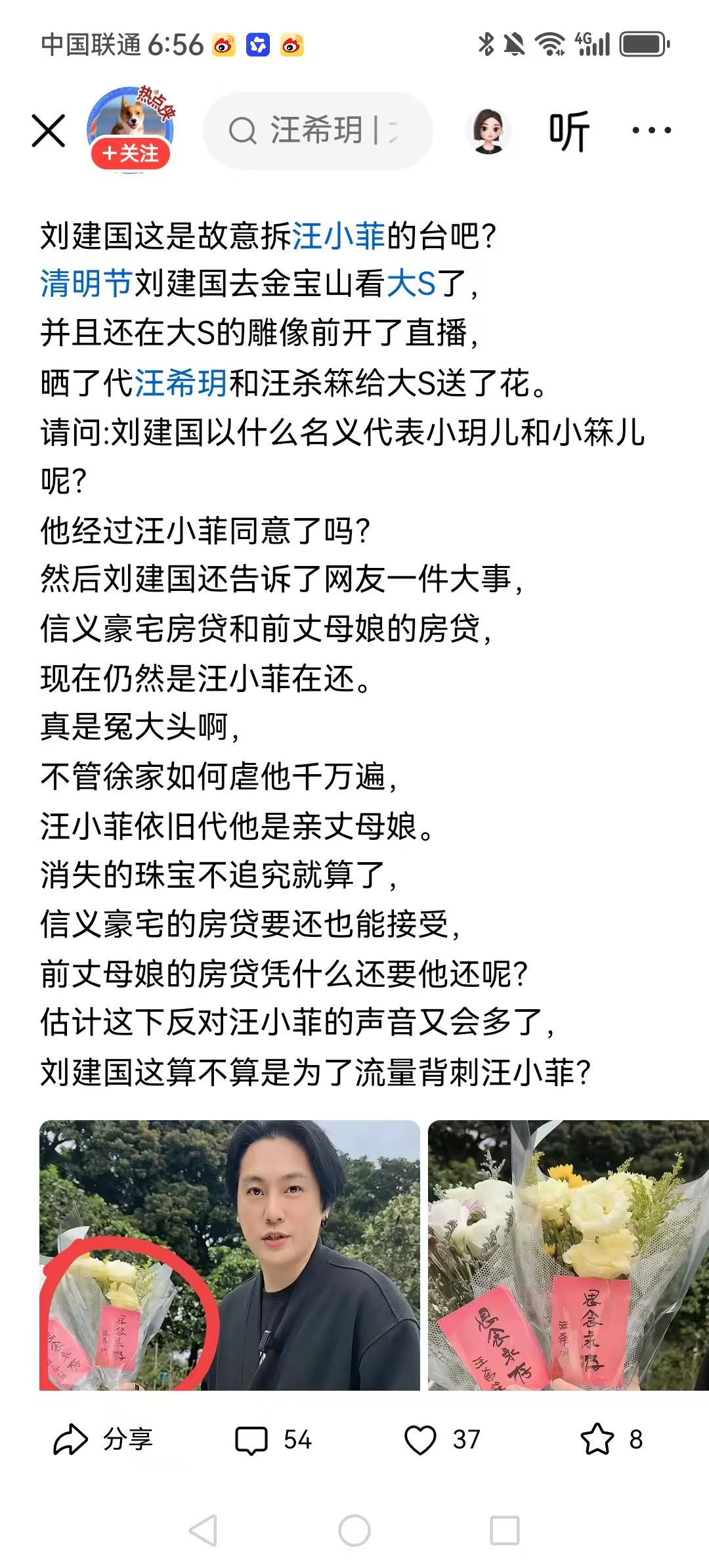 一直特别纳闷两个孩子都在台湾,为什么没有报道去见母亲呢,估计麻六计销量会更低了,因为汪在还房贷。 网友如果知道是真的,汪还在帮S一家还房贷,就不会买麻六记。 这个男人不知天天搅什么浑水,现在汪小菲已和小梅结婚了,还老提过去的事干什么? 让大家知道太好了,以后大家更不买他家东西了,全让他贡献给湾湾了。 陌生人都能去啦,汪小菲还不带去真是装模作样。