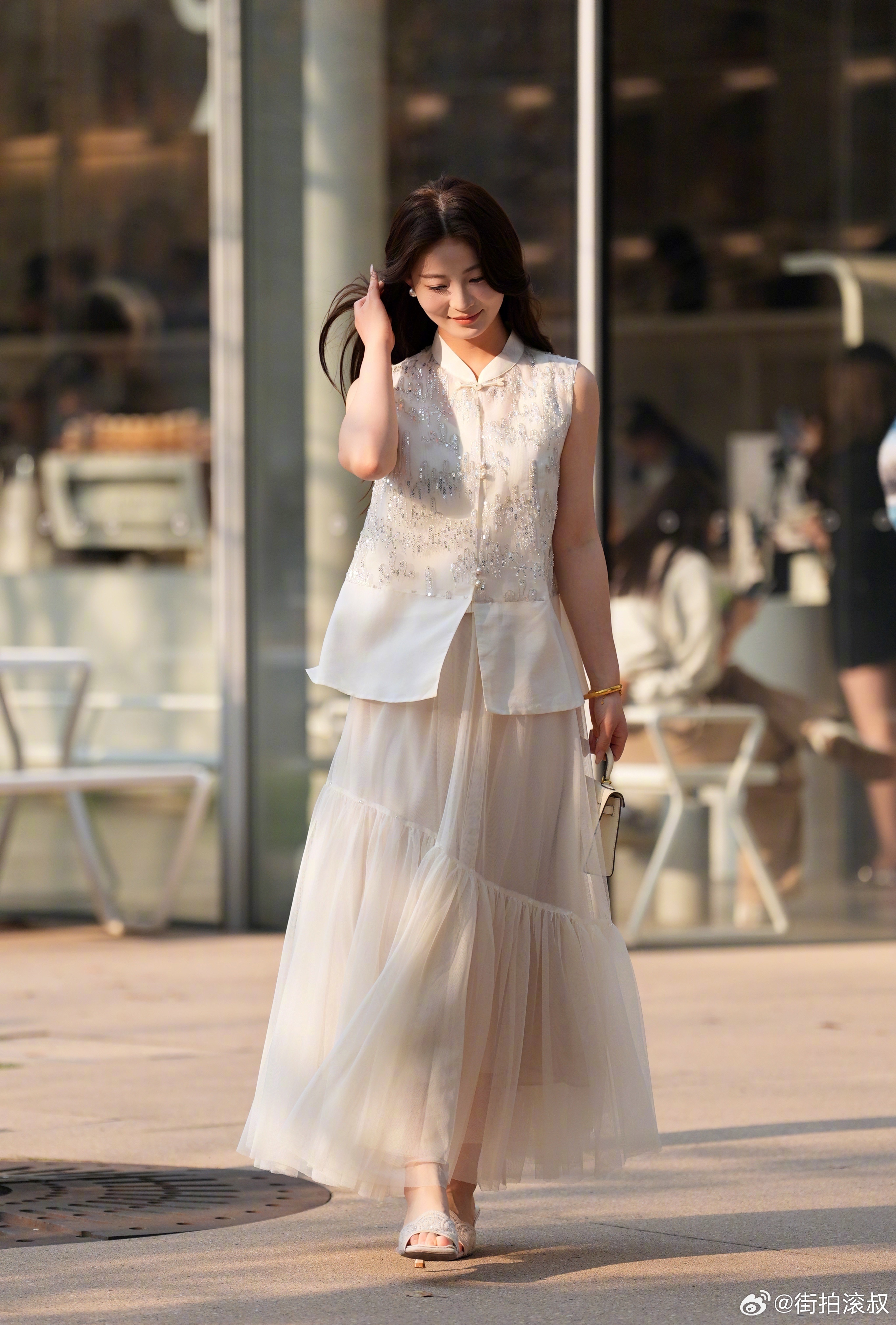 张紫宁,小白裙穿搭,又酷又美的小姐姐。张紫宁