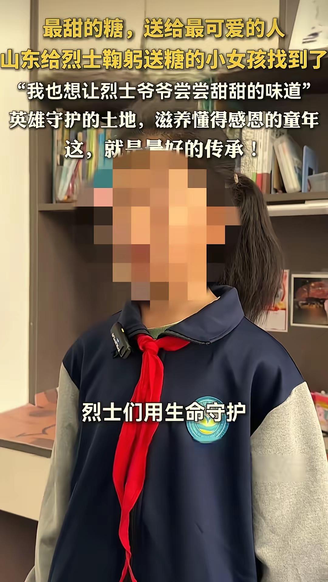 山东聊城,10岁女孩因为错过了学校组织的祭扫活动,执意让家人带她去烈士陵园。她拎着一个小袋子,安安静静地走进陵园。从第一个墓碑开始,深深三鞠躬,然后从袋子里掏出一样东西,小心地放在墓碑上。 不是鲜花,不是水果,是两颗糖——高粱饴和椰子糖。是她平时最爱吃的。 从南到北,一个墓碑也没落下。每一座碑前,她都会站定、鞠躬、放糖。全部完成后,才默默离开。 有人问她:为什么要放糖?她说:“糖是我用平时攒的零花钱买的,都是我平时爱吃的。我也想让烈士爷爷们,尝尝甜甜的味道。” 这一句话,让无数人破防。 孩子的世界是纯粹的。她不知道什么是仪式,什么是任务,只知道烈士们为我们拼过命,换来今天的幸福生活。所以,她要把自己最珍贵、最甜的东西,分给他们。 一颗糖,是女孩能给出的全部心意。朴素的敬意,真诚的惦念,比任何豪言壮语都动人。