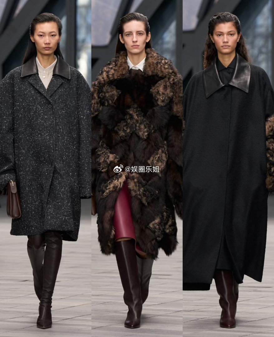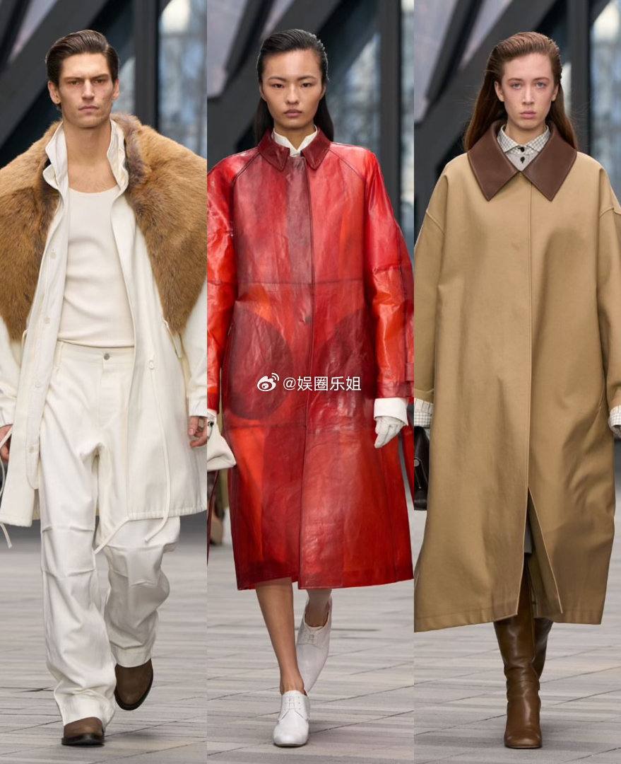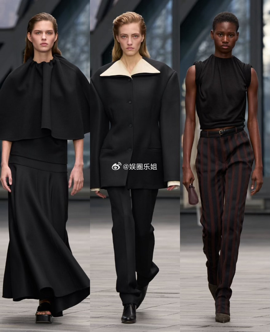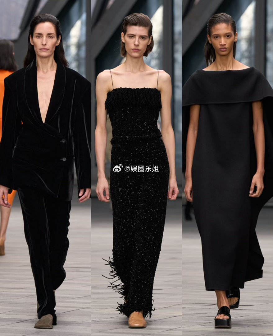 但问题在于想法太杂。透明皮革风衣、雕塑感衣领、露背设计、柑橘橙色……这些本该强化极简的细节,反而让整个系列既显保守又失焦。最后一个造型更是彻底打破了整体氛围。