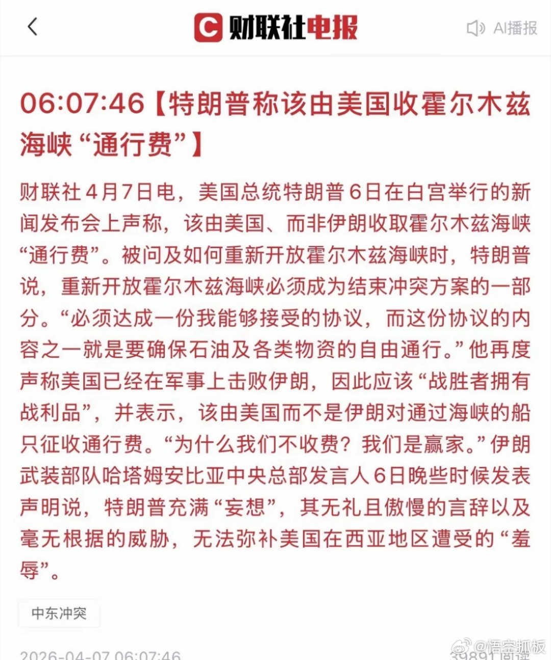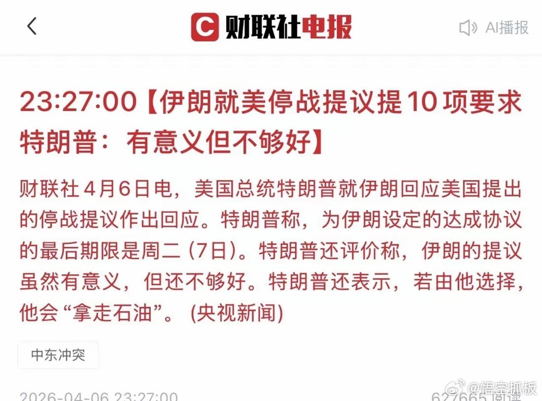 美股三大指数已经四连阳了,今天日韩股市也集体高开,A股市场今天怎么走:1、美股四连涨之后,川普还在继续画K线,美股涨完后,川普就开始继续加大威胁,这再次成为了A股盘前的利空;2、川普称只需要四个小时就可以摧毁伊桥梁和发电厂,还称可以一夜击溃朗子;川普把警告的最后时间定格在7日晚八点,也就是北京时间的8日早八点,也就是明天;这样大家又都会担忧明天早上八点后是否会有局势加剧升级的利空,股市里资金又是高度紧张的;3、川普依旧宣传自己赢麻了,现在大家其实都在等待着有好消息释放;毕竟昨晚美伊停火协议方案,至少证明双方确实是在谈判,只不过各自都有自己的要求,短期内可能很难达到双方满意的结果;其实这个时候就看谁会做出妥协让步了,或者是继续打下去,就看谁先熬不住;要么短期妥协停战,要么就是继续打下去然后看谁扛不住;4、对于今天的A股市场来讲,大概率会有一个补涨的行情,毕竟假期内外围股市整体是反弹上涨为主;对于股市来讲,没有更坏的消息其实就是好消息;尽管川普盘前继续威胁施压,但他是一个善变的人,所以盯着他的消息去谨慎意义不大;重点的是看金融市场表现还有海峡情况:一是日韩股市集体高开,这两天也都是上涨,金融市场情绪表现稳定;二是霍尔木兹海峡近期通航量在增加,这是好消息;所以对于A股市场来讲,有这两个利好指引其实已经够了,中东冲突四月份大概率会有一个结果;现在很多人都在一致预期川普暴怒后会有最后一次大跌;而股市里往往一致预期太高的结果就不一定会真正实现;认可的点赞,关注我,时间会给你最真实的答案