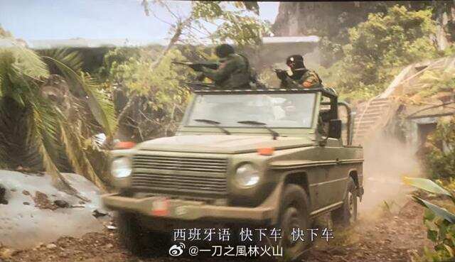 电影中追杀主角一行人的军队驾驶的是由奔驰G级衍生的Puch G车型,戏中的车型为1979年版第一代G级。尽管在电影当中形象很难谈得上光彩,但出现在恶劣的自然环境当中,本身就是对它越野性能无声的广告。与它同源的奔驰G400d顶火版就在这里,等待着与您演绎一场自己的“速度与激情”
