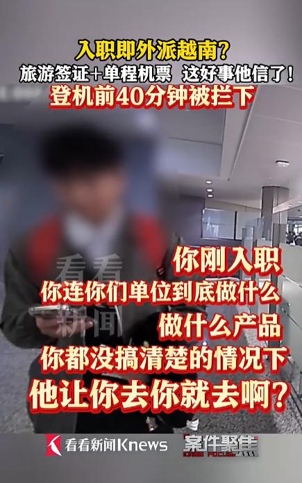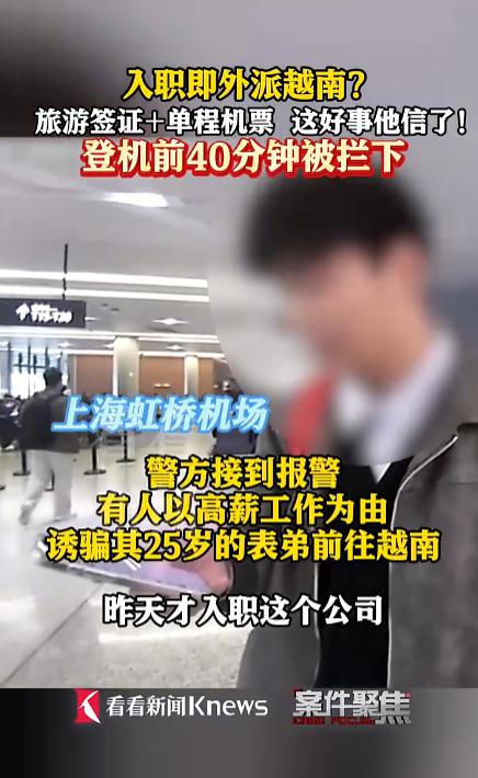 看到小伙入职第二天就被外派越南差点被坑的新闻,我后背都凉了半截。这年头,求职骗局太猖獗了,高薪诱惑就像糖衣炮弹,专打年轻人想翻身的心。 那个 25 岁小伙刘某,刚进一家 “数字产业链” 公司,啥活儿没干,第二天就被催着飞越南,机票还是单程的旅游签证,连合同都没有 —— 这摆明了是诈骗团伙的套路啊! 警方在登机口拦下他时,离起飞只剩 40 分钟,真险过剃头。想想每年数千人被这种 “外派” 骗到东南亚,落地就被控制,护照没收,自由全无,简直人间地狱。 我自己就遇到过类似陷阱。去年找工作,一家公司吹嘘月入 3 万外派柬埔寨,面试就五分钟,啥都不问,直接让签 “意向书”。幸好我多留了个心眼,查了查公司背景,发现是空壳,立马跑路。现在想想,正规公司外派哪会这么草率?工作签证、往返机票、岗前培训,缺一不可。那些只给旅游签还催着走的,九成九是坑。 求职路上,别被 “块钱” 蒙了眼,多和家人商量,查查资料。毕竟,安全比黄金还重要啊!
