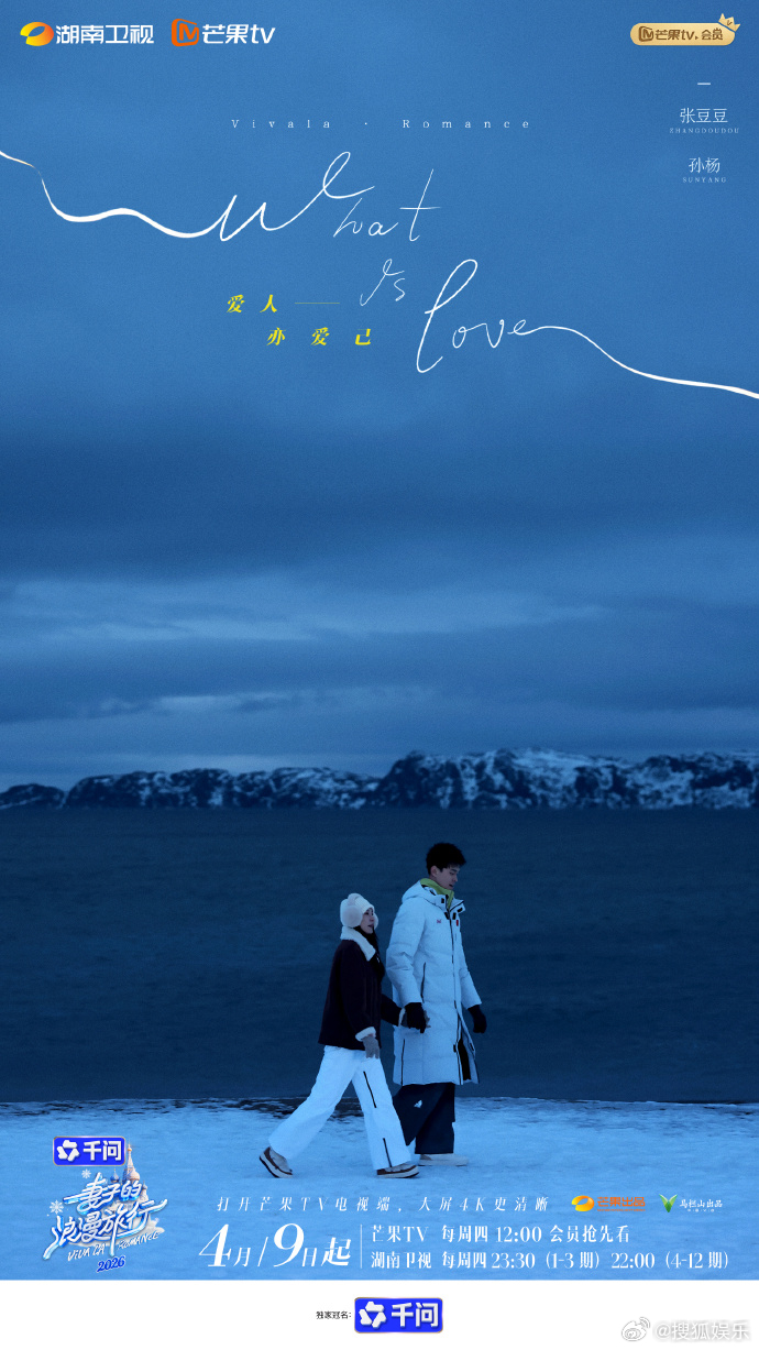 新一季《妻子的浪漫旅行》官宣秦昊&伊能静、李纯&马頔、金莎&孙丞潇、孙杨&张豆豆四对夫妻加盟阵容并定档!周四能看喽妻子的浪漫旅行2026定档