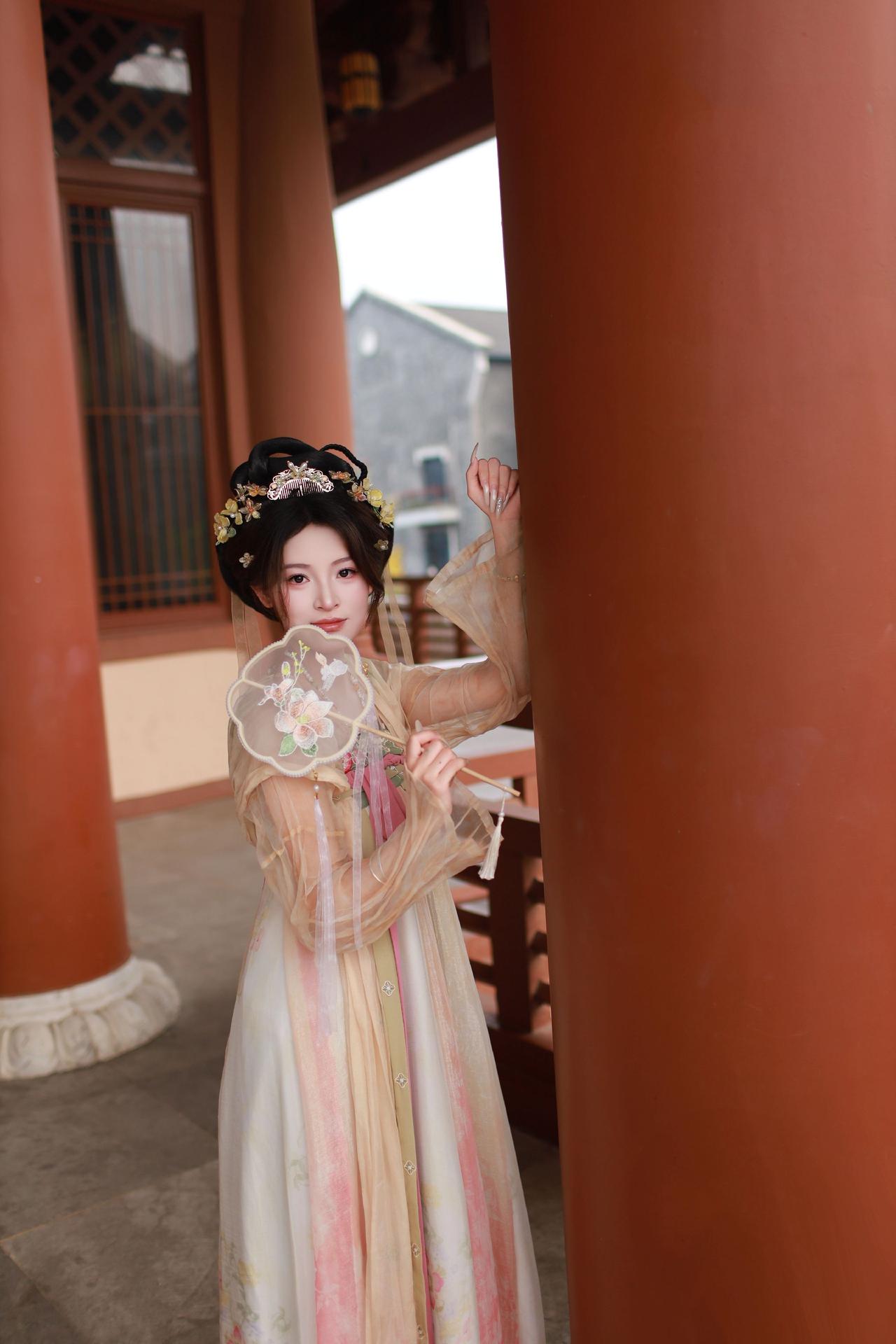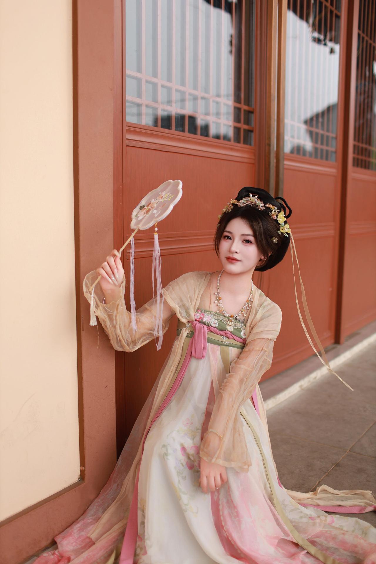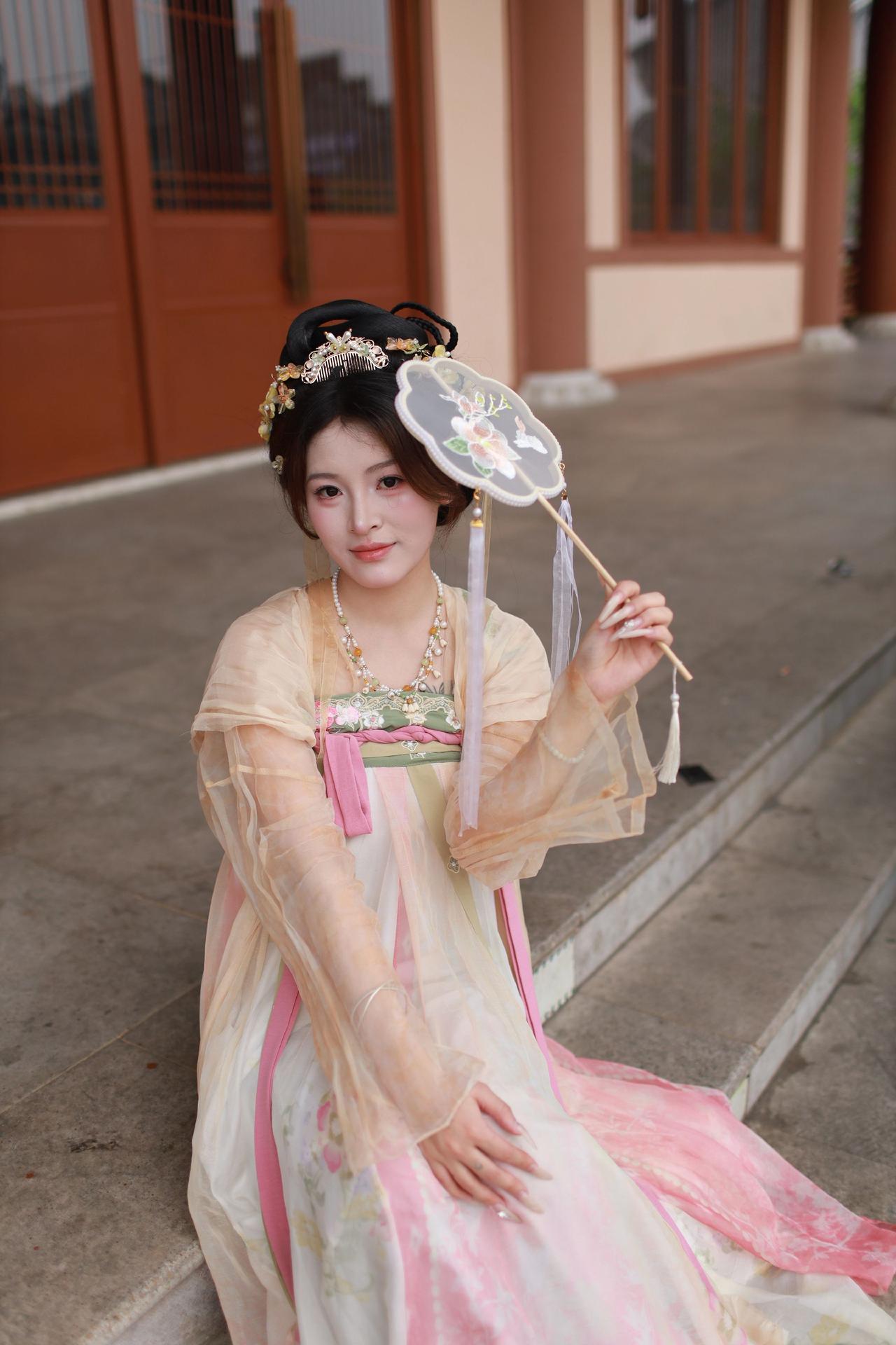 王玉雯,粉裙曳水,簪花映容,一颦一笑皆是东方古韵。汉服之美,在一针一线的精致,