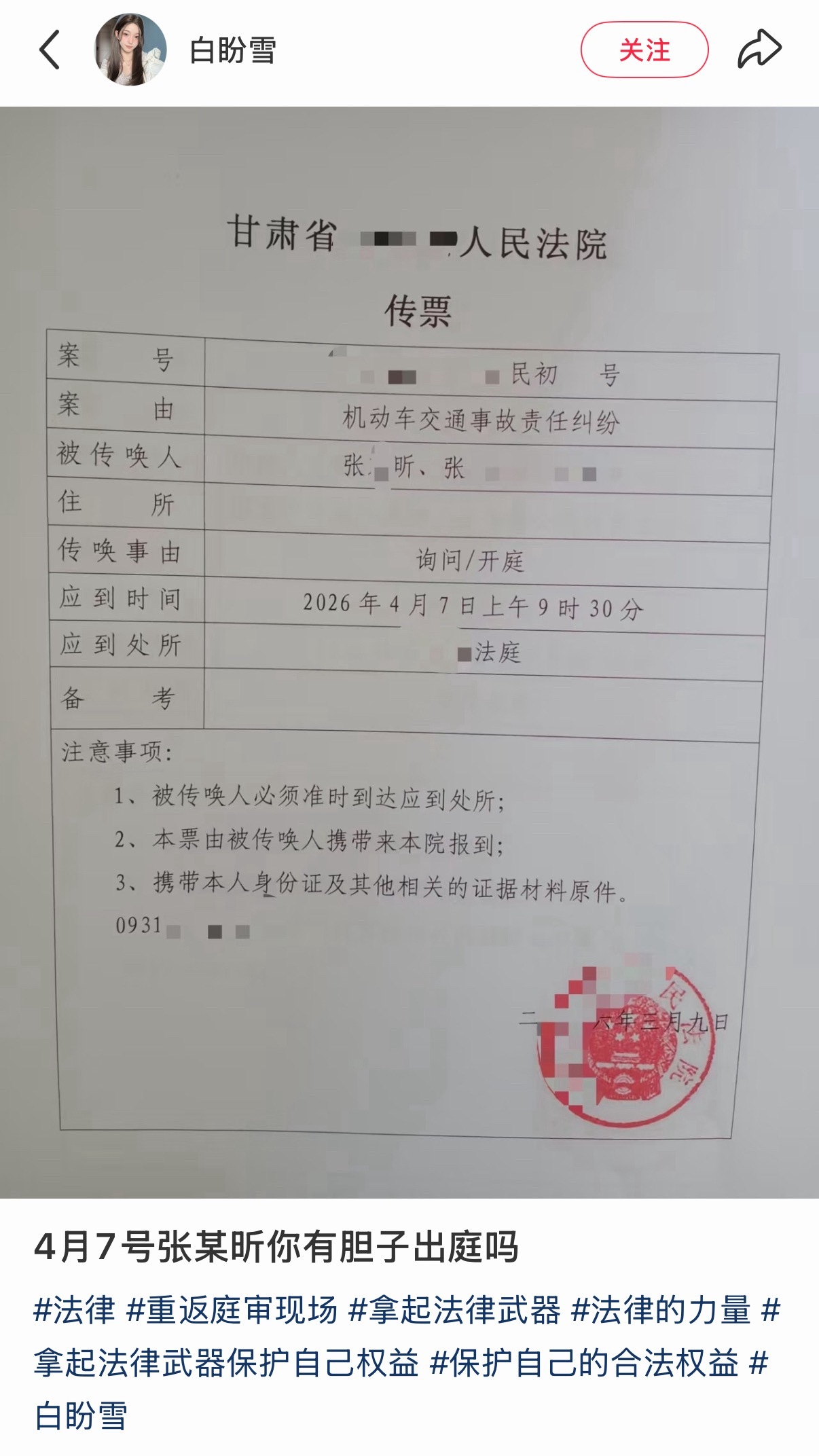 车祸截瘫女子起诉肇事失联男友事情过去一年,终于要开庭了!当初女主白盼雪因这起交通