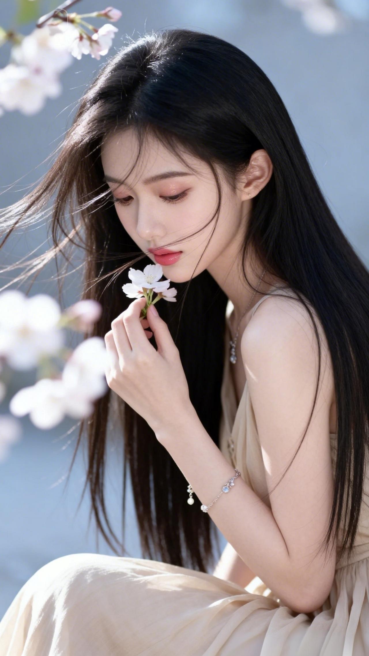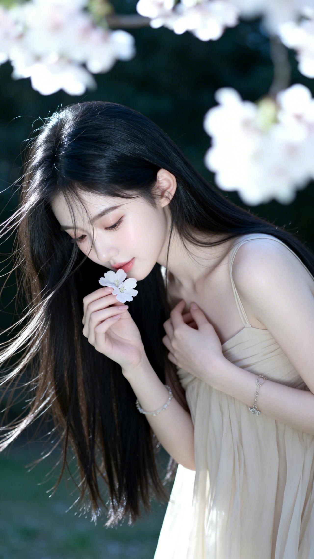 “花间美人笑,春风满面香”, 清新的少女身处这绝美的意境,嘴角含笑,简直美到窒息