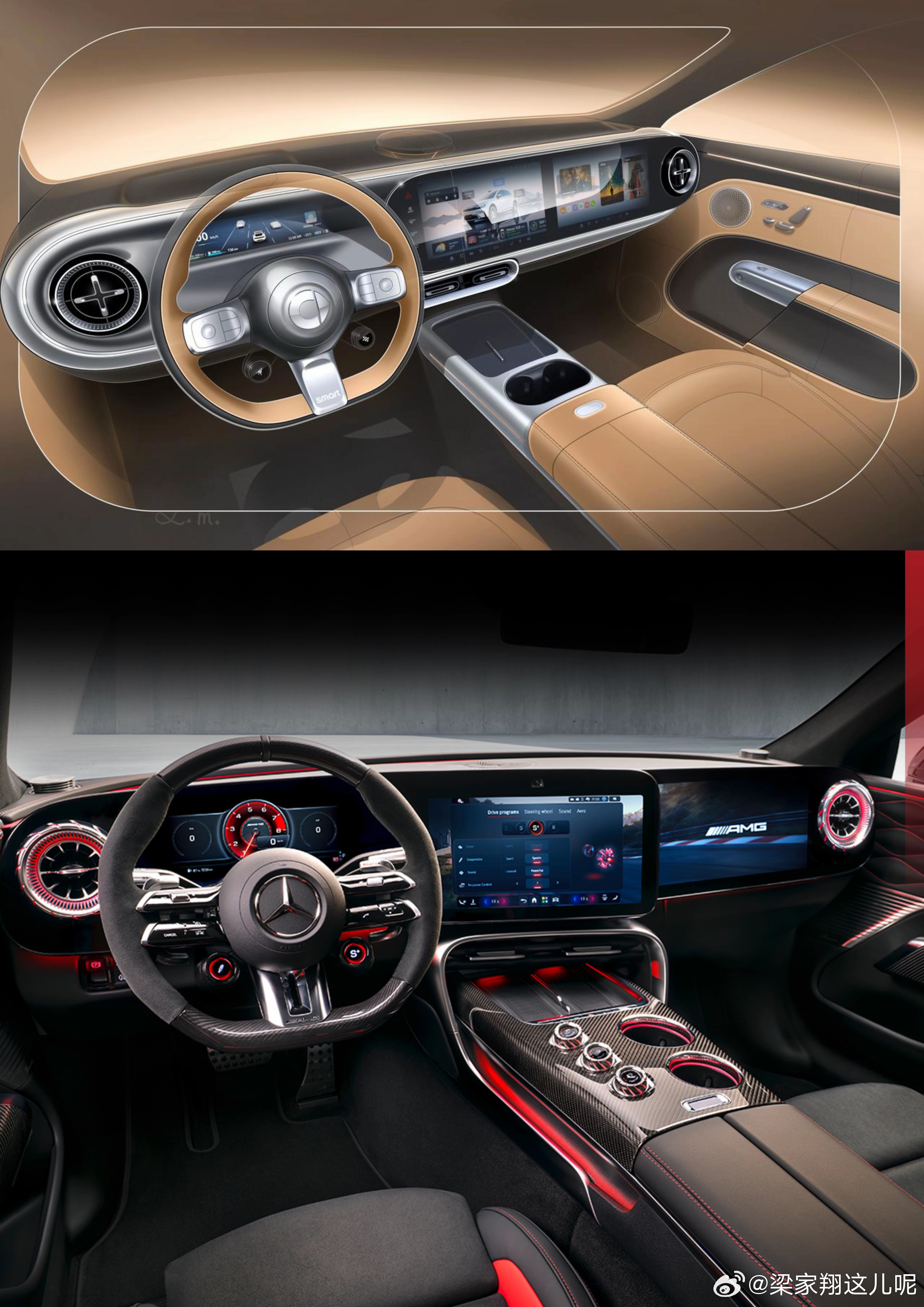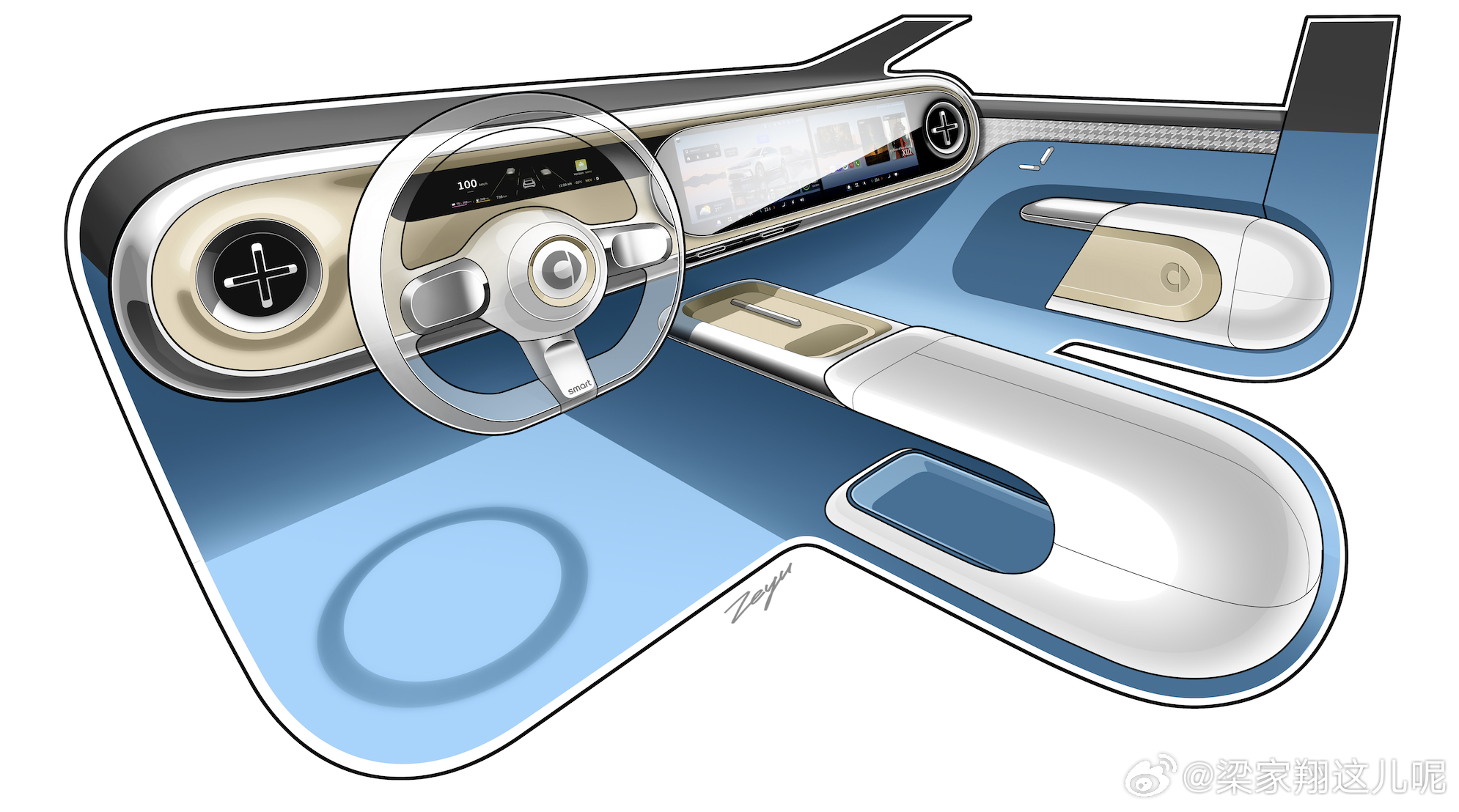 这是smart精灵6号的内饰,我还放了设计草图。