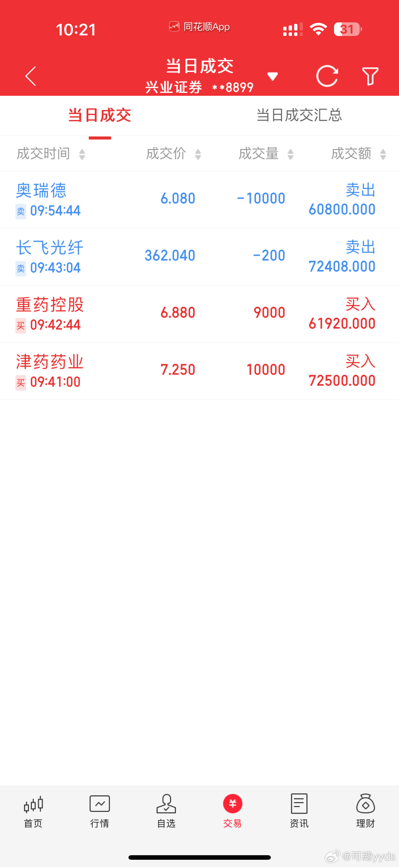 另外兑现承诺冲高取关长飞光纤,奥瑞德,提现34W把充值部分以及利润全部离场。