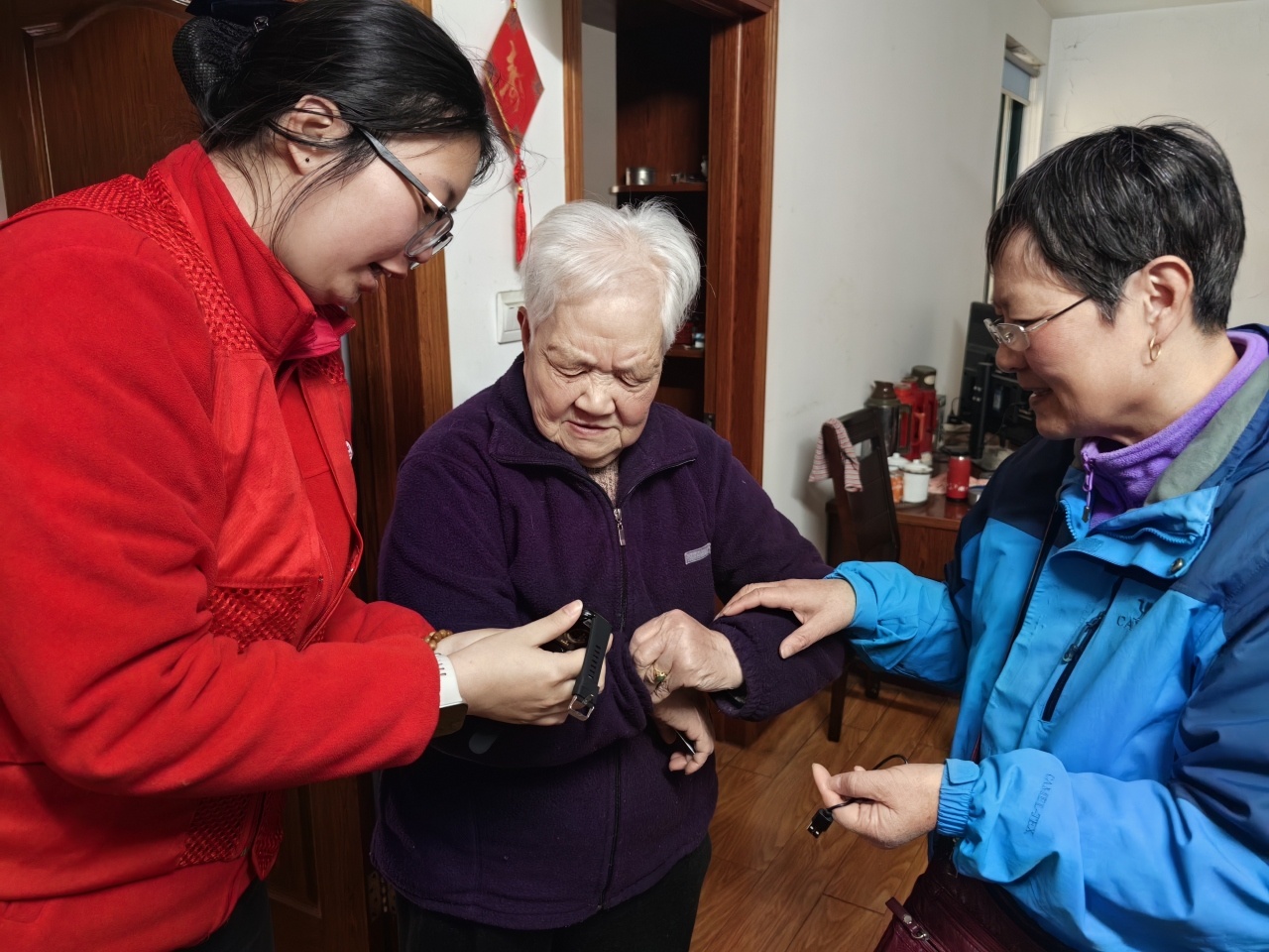一只手表一支队守护宁波江北高龄老人 宁波江北洪塘给独居的高龄老人配上一块智能手表,测血压看心率,摔倒了一键呼救,子女手机上随时能看见,再也不用天天担心了。