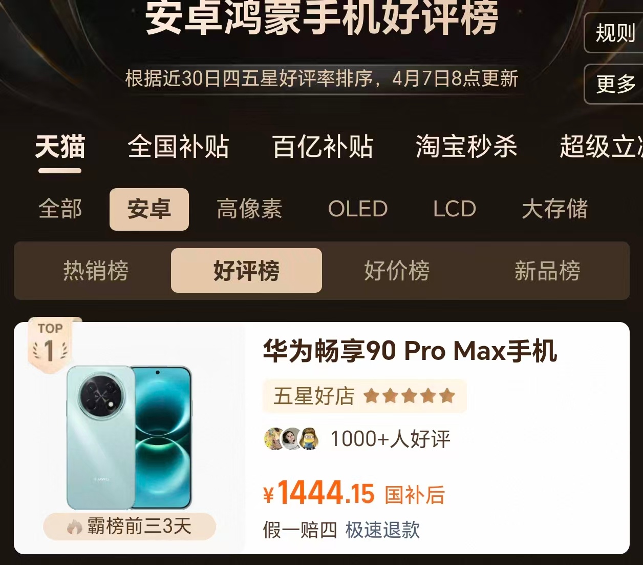畅享90系列这波是真的拉满,各种霸榜的节奏。真华为手机全面回归 90 Pro M
