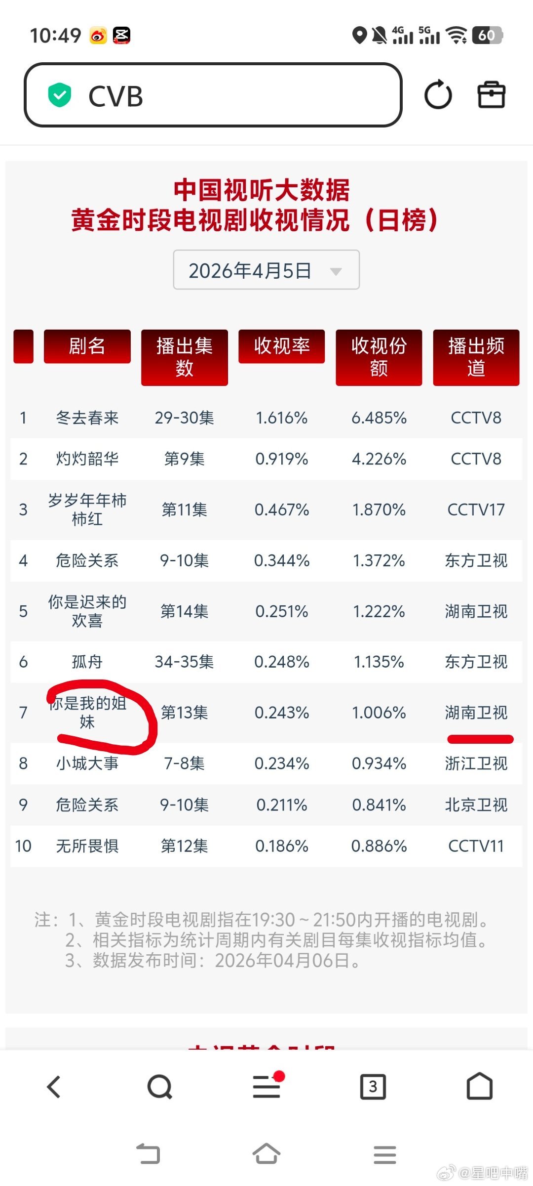 4月5日cvb收视日报