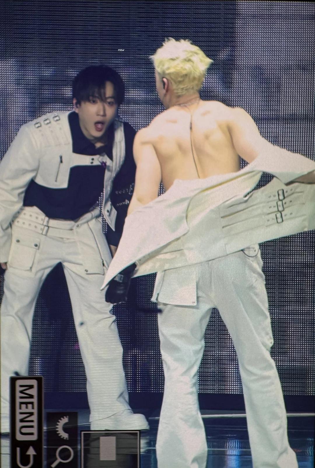 我要笑死了 你倆的反應ㅋㅋㅋ 不過從正面看的確挺驚豔的ㅋㅋ 圖片:TT_3racha skz straykids 方灿 李旻浩