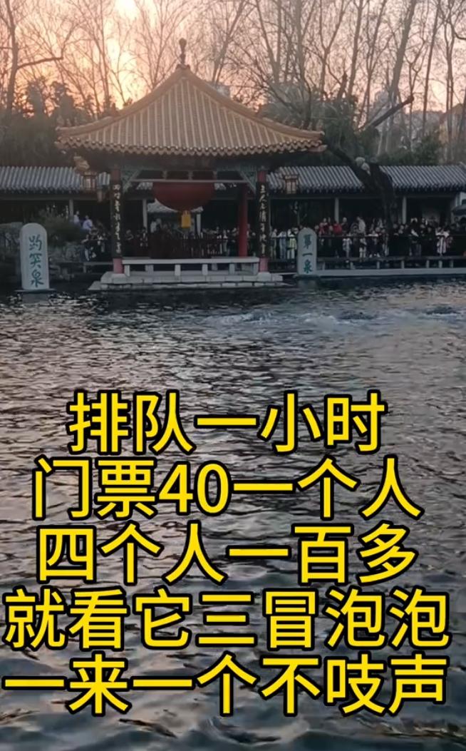 惊呆了! 刷抖音刷到好多嫌趵突泉门票贵的! 60以上免费,儿童半价,成人40元的5A级景区…… 他……嫌贵!!! 你可以不去,也可以去旁边的五龙潭、大明湖等免费,但同样美丽的景点。 咱不能我穷我有理,济南市区几乎没有收费的地方了。千佛山也是几十元,但旁边大佛头也就是佛慧山免费,而且千佛山好像早晚免费! 然后,济南逛一圈,玩2天,门票加起来不到100元……而且旁边都有免费的平替! 你却嫌贵? 这合适吗? 你玩的还是上语文课本,5A级景点。 40元,你嫌贵?? 你可以不去,也可以说趵突泉没有喷泉喷的高,甚至不美丽。 但嫌门票贵的,以后咱别出门了好吗?