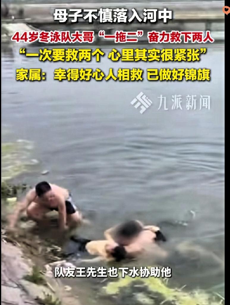 真正的勇敢从不是毫发无损,而是明知危险仍选择向前。 安徽这位44岁的冬泳大哥,救人救到岸边才发现,最凶险的一步才刚刚开始。 光滑湿滑的护坡让他寸步难行,一手护着孩子,一手撑着母亲,自己却一次次被冲回水中。 冰冷河水抽干体力,肌肉僵硬、呛水不断,可他始终没松开手。 很多人以为把人拉到岸边就大功告成,却不知这最后一步往往最耗心力,也最考验人性。 他不是专业救援队员,只是心怀善意的普通人,却在绝境里把生的希望优先留给陌生人。 这份不掺半点杂质的担当,远比高调的壮举更有力量。 生活里总有人默默挺身而出,你身边有没有这样让你瞬间破防的普通人?