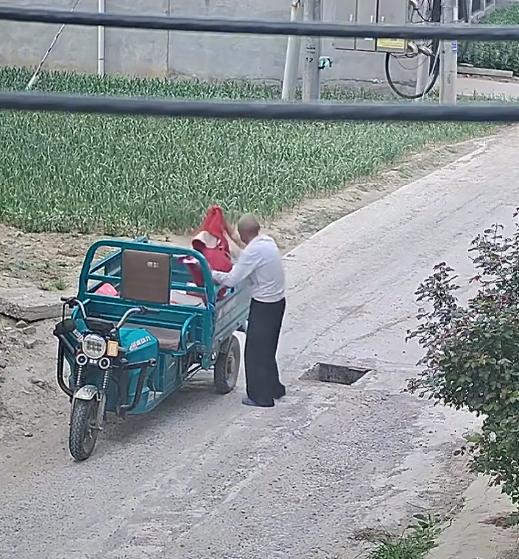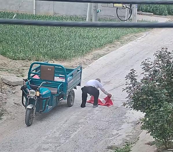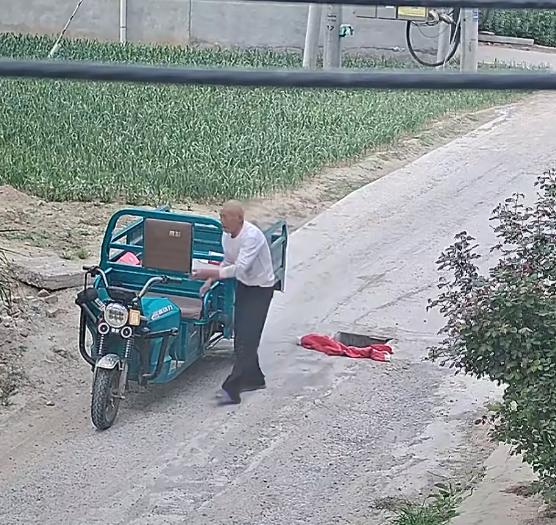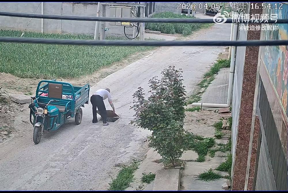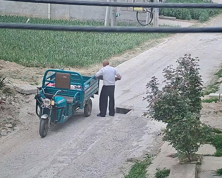 监控下一个大爷干的缺德事,偷走了马路中间的井盖留下一个窟窿,为了掩盖丑行,盖了一块红布。这应该是一条村道,大爷骑着一个农用的三轮车经过,看上了路中间的井盖。左右看了一眼,四下无人,停在井盖旁边,把井盖搬上了车。可能是担心这个窟窿影响来往的车辆,就扯了一块红布盖一下,可能在他心里面想这是个警示。大爷家的羊圈还是猪圈缺一块盖板,还是想拿回去当废铁卖钱?不是老人变坏了,而是坏人变老了。大爷,要是后续车辆卡在这个窟窿里,看你该怎么赔偿?