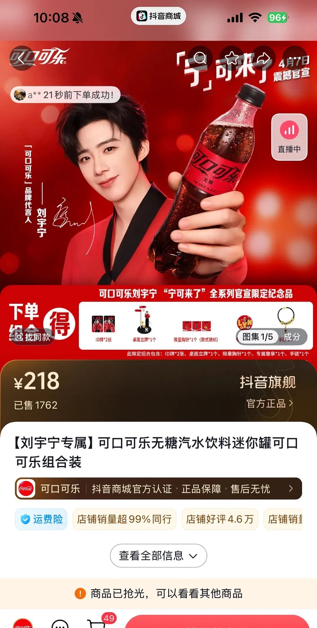 刘宇宁 可口可乐粉丝购买力。。。太强了,直接抢光了。。我趣