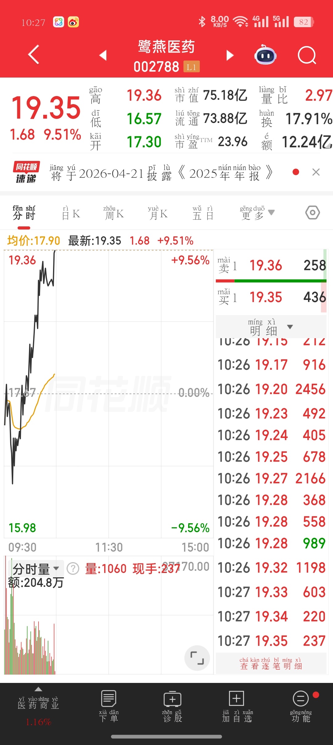 鹭燕医药也还不错,继续支持蔡姐的兄弟姐妹们赞赞点起来,你们说会涨停吗?