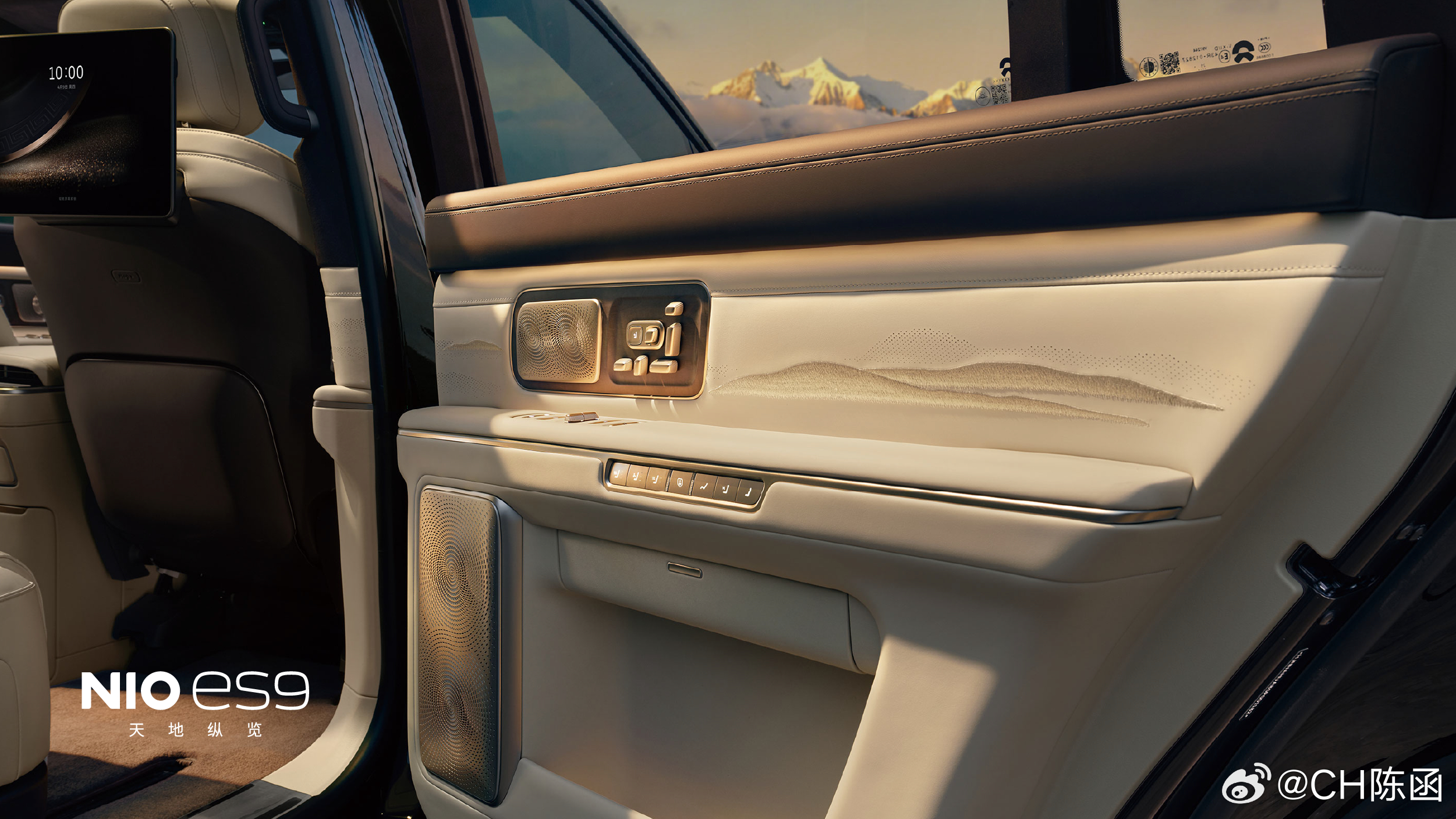 蔚来ES9开始猛猛爆料了!今天第一支宣传片,我们能看到:▷ 图1 blingbling的水晶日间行车灯▷ 图2 犀利的眼神,启动时依次点亮▷ 图3 翼子板的“能量条”和大饼轮毂▷ 图4 门板有2个低音扬声器,并且带有光效▷ 图5 图6 门板和座椅上都有山⛰️形刺绣▷ 图7 门板有3层氛围灯,中间一层呈现篝火舞动▷ 图8 6座布局带中岛,后排屏幕在座椅靠背上这套内饰,我觉得是目前中国品牌豪华车的设计巅峰,审美高级,显贵,接地气但是没有土气。实车很快就到店了,推荐大家去店里感受感受。