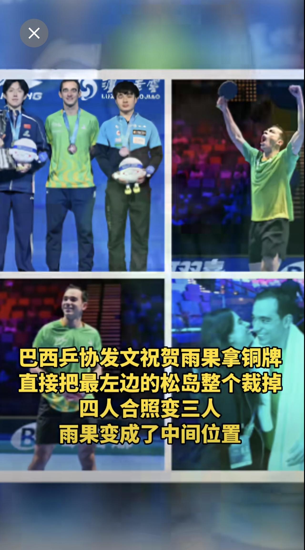巴西乒协发合照直接裁掉银牌得主松岛辉空 合照中铜牌选手雨果稳居C位 无论如何!冠