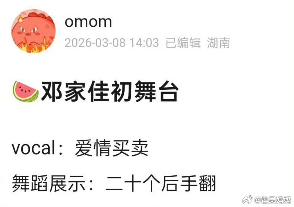 找到邓家佳不来浪姐的原因了想到之前网传邓家佳参加浪姐初舞台的🍉,二十个后手翻……编瓜的人也是很离谱