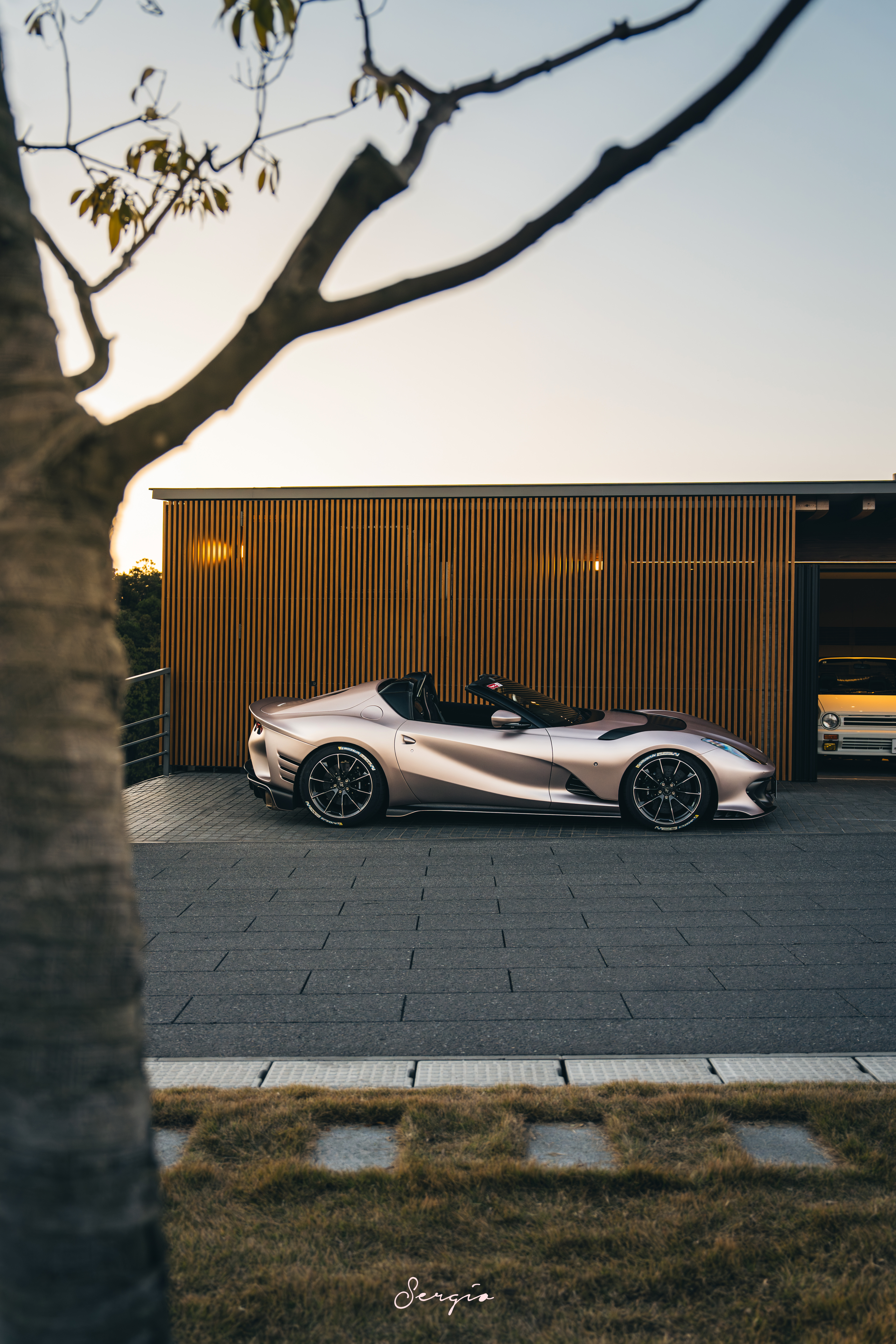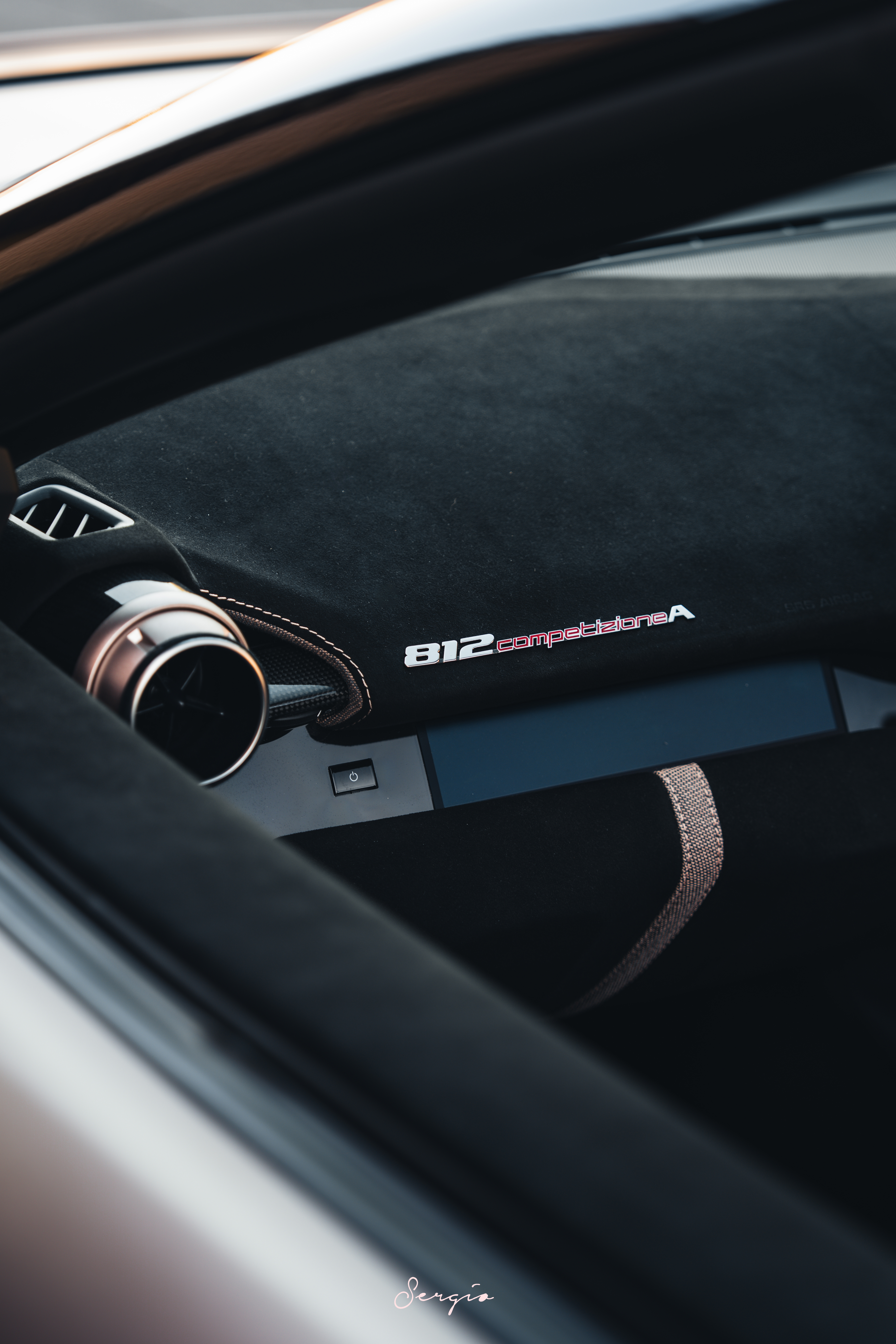 Sergio的摄影库 Ferrari 812 Competizione Aperta12月时在Bososai见到了这台著名收藏家Sam Li的812CA,没想到实物能有这么漂亮这个颜色名为Bronzo Masaru Opaco,类似哑光玫瑰金的颜色,放在812CA上真是优雅至极,并且这台车的内饰出风口,针织点缀等也用了同样的颜色,实在是太喜欢了,个人觉得绝对是世界上最美的812CA之一了
