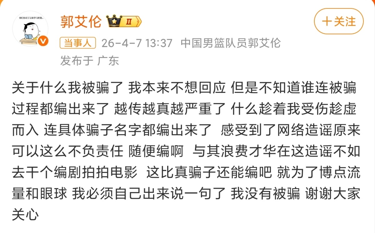 关于郭艾伦被诈骗,说的有鼻子有眼,差点连他自己都信了!郭艾伦否认被骗