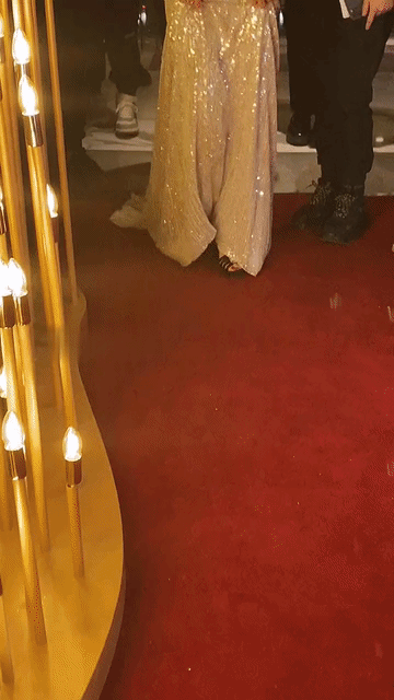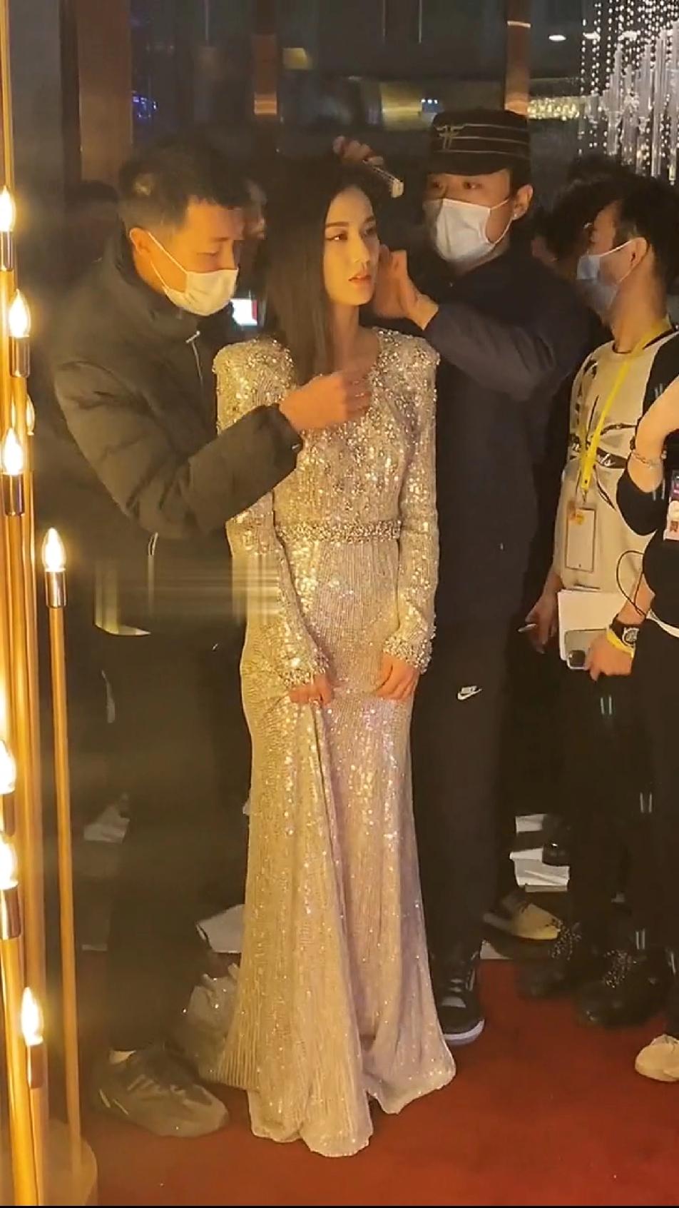 感觉黄圣依长了一副很没有心眼的样子,也不知道前面这个大哥是在给黄圣依整理什么?贴着黄圣依那么近,头都要放到黄圣依的肩膀上了,只见这个大哥领口摸一摸,又在裙子上乱摸两下,感觉最后还碰了一下黄圣依的手,黄圣依毫无反应,随便这个大哥瞎弄,实际上他整理的这两下完全就是多余的,真看不出有什么必要去摆弄这几下?反正观感不太好,看起来不像在整理衣服,更像是咸猪手!