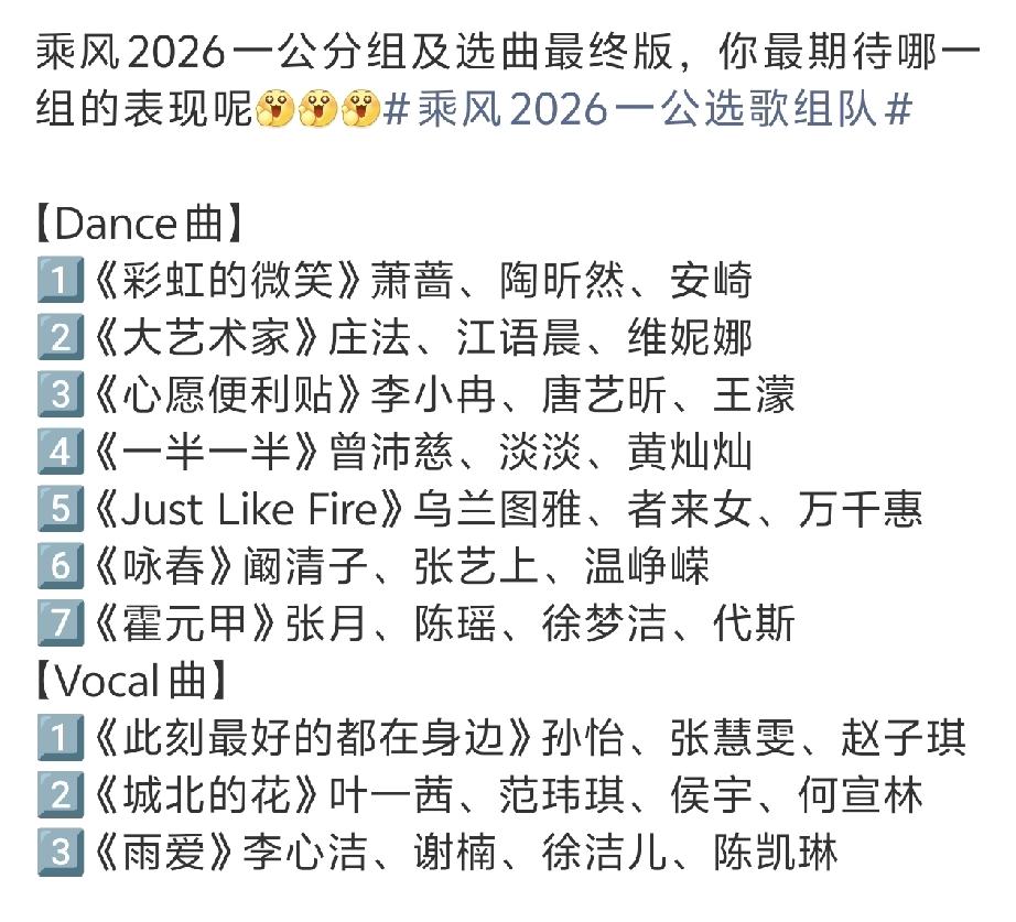看看这一公分组,如果说要淘汰三人的话那这组里的人最危险! 首先《咏春》组里的阚清子、张艺上还有温峥嵘,这是个标准的演员组,三人唱跳没一个出彩的,特别是一公舞台阚清子算是靠情怀拿高分,温峥嵘的表演赢了代斯更是被现场观众揭穿黑幕,张艺上也因私生活先声夺人没有观众缘被边缘化。 你觉得会淘汰哪三个才算没有黑幕呢? 条友这一周