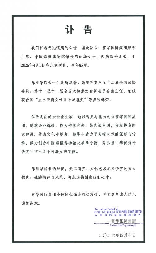 突发!“唐僧”妻子不幸离世,死因令人惋惜!曾以505亿元成中国女首富,被誉为“中国紫檀女王”。   陈丽华的故事并非始于繁华,而是从平凡甚至清贫中崛起。她出生于满族世家,有人说她是慈禧的后裔,又有人称她是“格格”,但是这些光环并没有为她的人生带来轻松。她很早就辍学,履历中没有显赫的名校背景,只有一段靠微薄收入养活自己的艰难岁月。   从家具修理工到创建工厂,她的一切起源于勤奋与智慧。那些不被时代眷顾的日子里,她靠手艺谋生,靠诚信打拼。陈丽华从不起眼的小生意中找到机会,由此开启她事业上的第一道大门。在那个重视人情与信誉的年代,她的踏实和敏锐眼光成为她打开更多可能的钥匙。   上世纪80年代,命运迎来了一个重大转折。陈丽华选择移居香港。彼时的香港是许多内地人梦寐以求的冒险之地,这里有新的财富机会,也有更多商业挑战。她并不是那种随波逐流的冒险家,她以敏锐的洞察力和敢于决策的魄力,把目光锁定在房地产和文物家具交易上。   房地产有风险,但也意味着回报。她买下多栋别墅并以高价出售,实现了原始资本的积累。一些人对她的财富起源好奇,流传着不同的版本,但不管是哪一种说法,都指向一个共同事实——她牢牢抓住了每一个稍纵即逝的机会,这让她从一个普通商人变成了资本玩家。   但陈丽华并未止步于资本圈,她选择回到北京,再次挑战自己。她以港商身份回到大陆投资,拿下长安街北侧的地皮,创立长安俱乐部。这并不是她商业版图的终点,随后的金宝街项目让她登上了事业的巅峰。   这条街不仅成为国际奢侈品的集中展示地,也奠定了她在商业圈的超然地位。她的眼光独到,商业布局精准,但她对文化始终保持深切的热爱。1999年,她个人出资2亿,创办中国紫檀博物馆,把热爱变成了一个影响深远的项目。   紫檀是中华文化的重要象征,也是一项濒临消失的传统技艺。陈丽华不仅通过博物馆展现紫檀家具的艺术之美,更以实际行动推动工艺的保护与传承。她一手搭建了一个传递传统文化的平台,用厚重的历史传承,弥补纷杂商业世界的浮躁。   她经常在各类活动中推广紫檀文化,让更多年轻人了解这一门濒危的艺术。很多人认为,她不仅是商人,更是文化守护者。正是这样一个“国”字头的民营博物馆项目,让她的人生更加充满厚度。   她也以身作则投身公益事业,用自己的影响力带动更多人参与慈善。作为侨商会会长,她倡导社会责任和公益,以自己的行动诠释一个成功商人应该肩负的责任。从北京到世界的广阔舞台,她始终在用自己的方式表达着对社会的使命感。   事业之外,陈丽华的婚姻也备受关注。1988年,她与迟重瑞相识。迟重瑞,因为出演经典电视剧《西游记》中唐僧一角而成为家喻户晓的演员。他们的爱情故事在当时颇具传奇色彩。这段婚姻也曾引发过不小的争议,但他们彼此坚定,最终成为相伴三十多年的夫妻。   本以为是传统的大众知名演员与企业家的结合,但两人却因为共同的爱好和默契,走过了长久的岁月。迟重瑞选择放下演艺事业,支持妻子的企业和事业。他曾说,和陈丽华的结合是顺其自然的决定,两人只是在彼此认定后坚定地走下去。   事实证明,这份感情的确是经得起风雨考验的,他们磨砺了彼此,也携手走过人生的跌宕起伏。   可在2026年4月5日,陈丽华女士因病逝世,享年85岁。这位被誉为“中国紫檀女王”的企业家、慈善家、文化传承者,以她独特的经历和不懈的努力,为世人书写了一个属于她的时代。   如今,她的离开让人们追思这位传奇女性的一生。她书写了从清贫到富足的蜕变,也塑造了从商人到文化传承者的角色转变。   最后愿逝者安息,生者坚强!陈丽华一路走好!