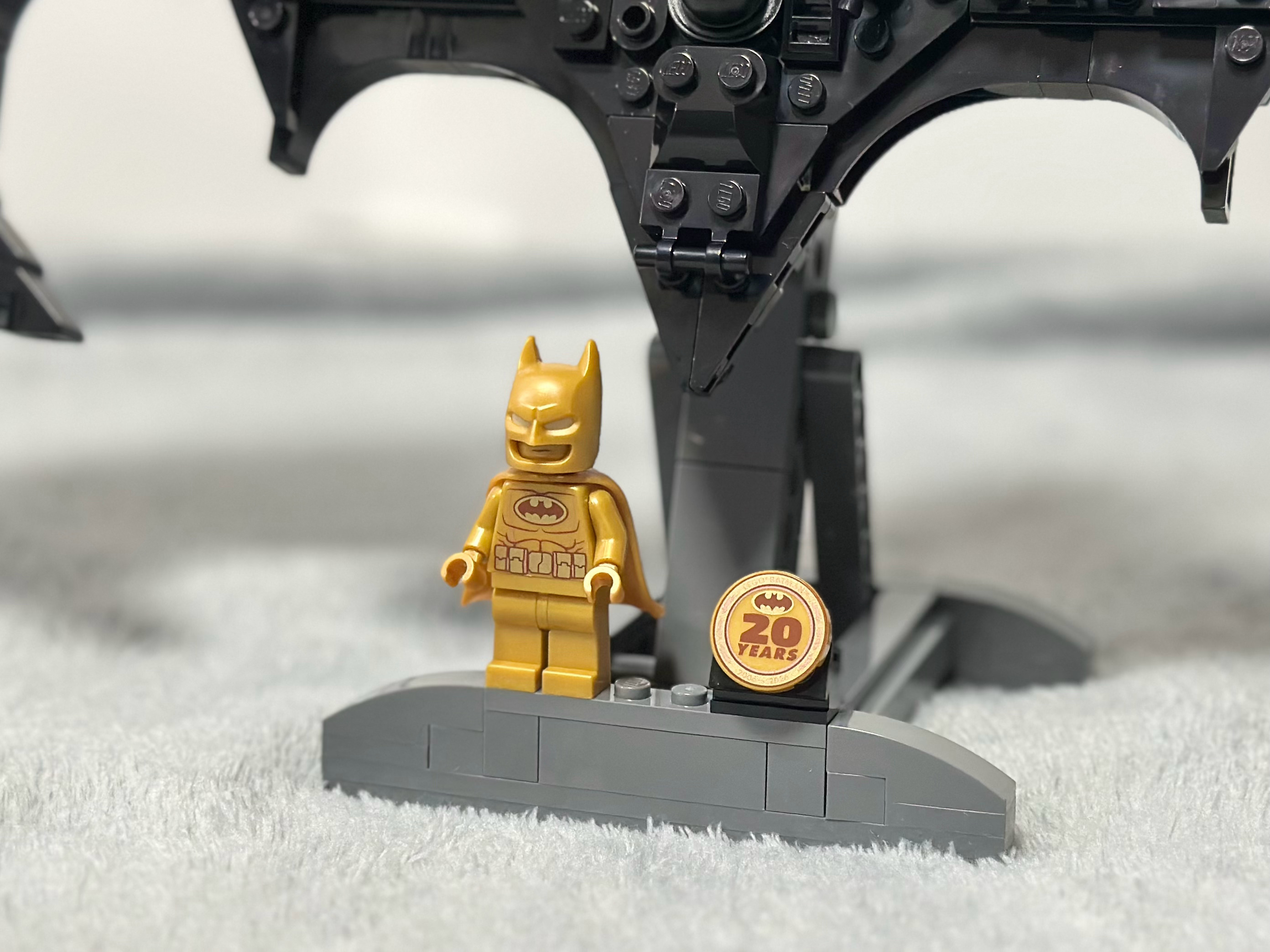 什么,你问怎么没有双面人的元素?这不是还有一枚专属硬币嘛!这枚金币形的圆砖印刷件,正是乐高®积木为老爷周年纪念特地推出的彩蛋道具,本次20周年纪念的全系列产品都有一枚,爱好者福音。这枚金币可以和老爷人仔一起,放进蝙蝠标志正中心的可打开舱门中,从而为整个蝙蝠标志达到画龙点睛的效果。
