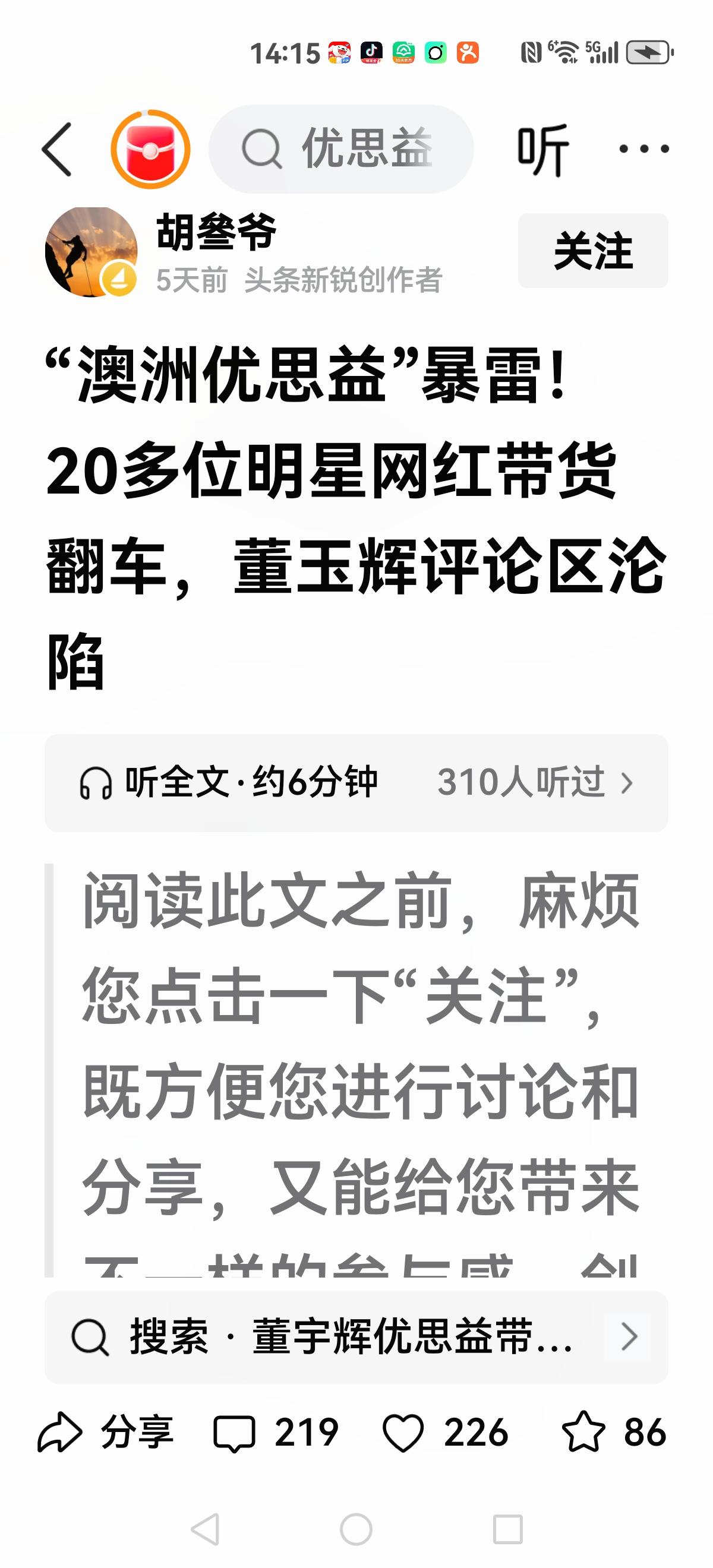 【董宇辉,使我想起年羹尧】 雍正给年羹尧在西北用兵的信件中,多次表达抛开君臣,你如果胜利就是朕的恩人,大救星等等 后来凯旋而归,却满臣不满,反年羹尧声浪越来越高,孙嘉诚就是突出代表。 最终在内外压力之下,雍正动了杀心。 看到这里感觉董宇辉好像深陷其中,倒辉气势越来越多,甚至提升到了非要判刑坐牢的心态? 当年受尽委屈一战成名,如今董宇辉收入争议 优思益压垮光辉的最后一根稻草? 残酷现实让人窒息