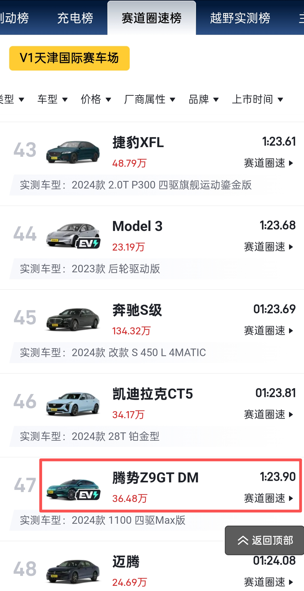 【天津V1赛道】腾势Z9GT的圈速是:1:23.90