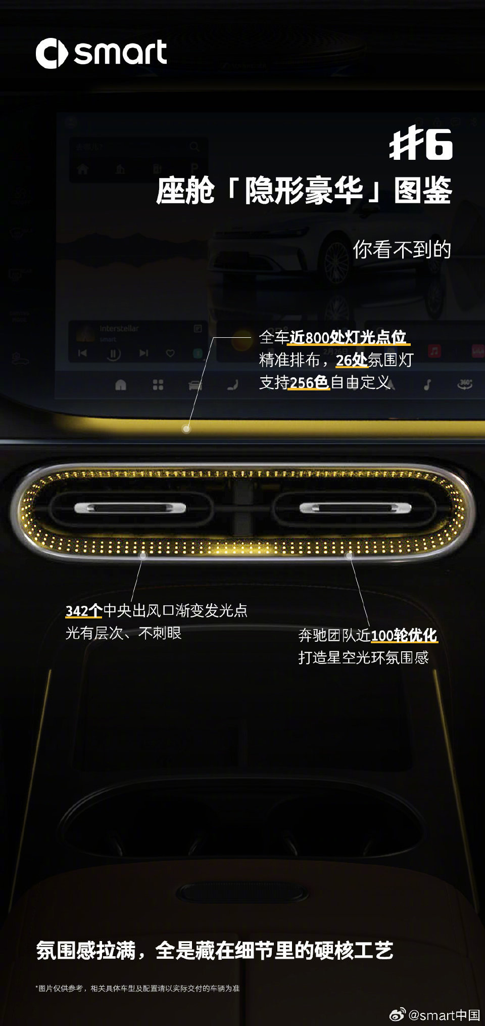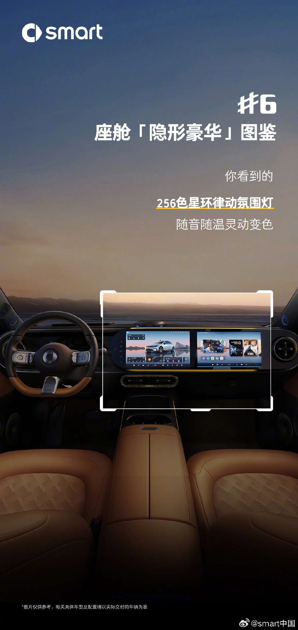 你愿意为车内的仪式感买单吗 4月7日,smart精灵6号正式公布内饰细节。新车配
