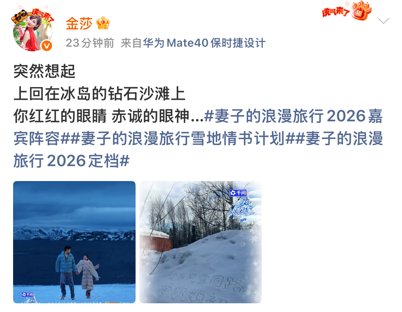 金莎孙丞潇上夫妻综艺了极光下冰岛求婚名场面还历历在目,这对甜度超标奔赴夫妻综艺啦✨目前还是超甜备婚情侣身份,坐等姐姐悄悄官宣领证~