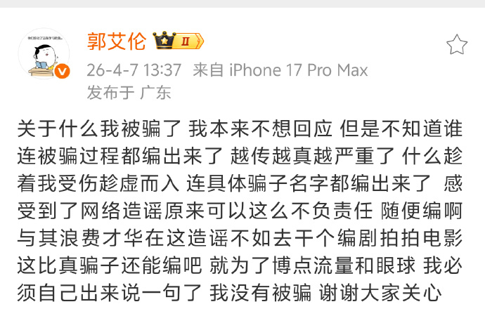 郭艾伦否认被骗不理解这些媒体,给别人造谣能给自己带来什么好处现在的新闻,连三要素里最重要的“真实性”都做不到了吗