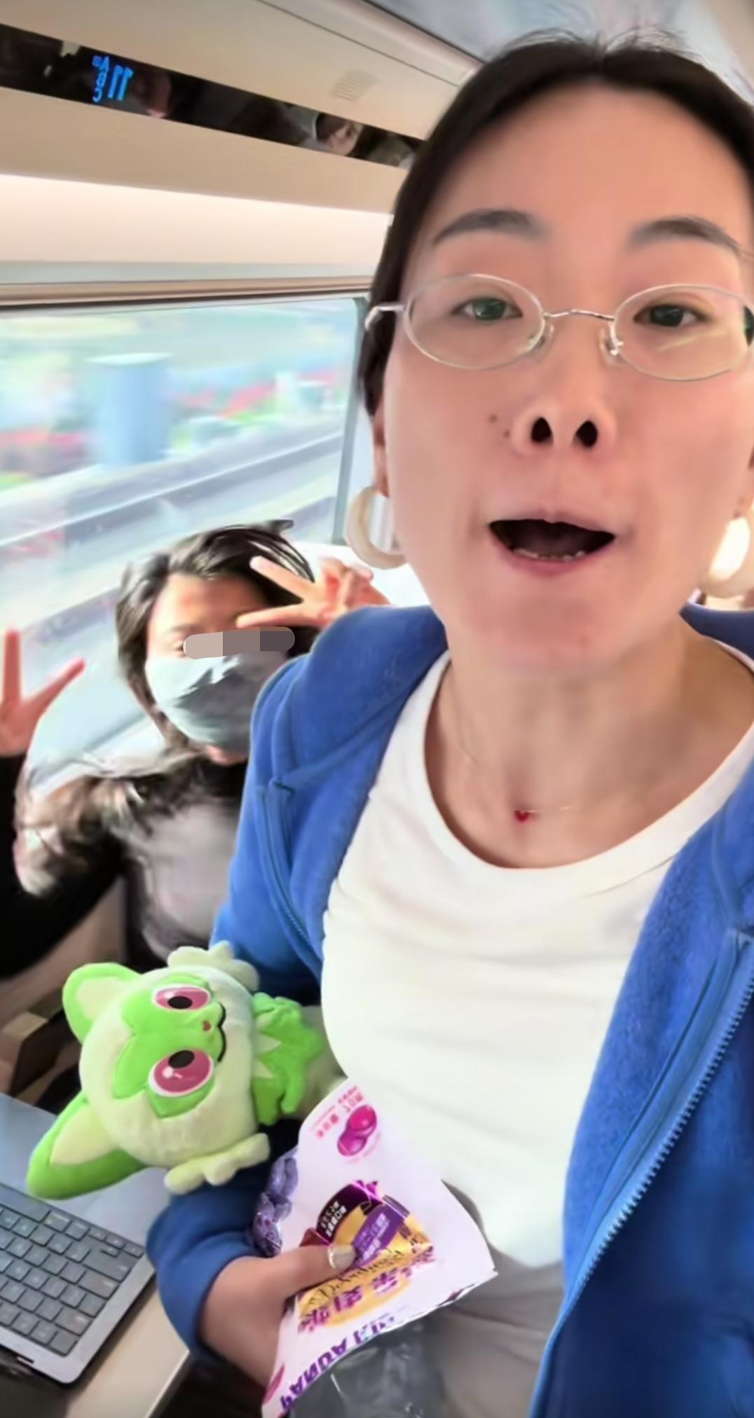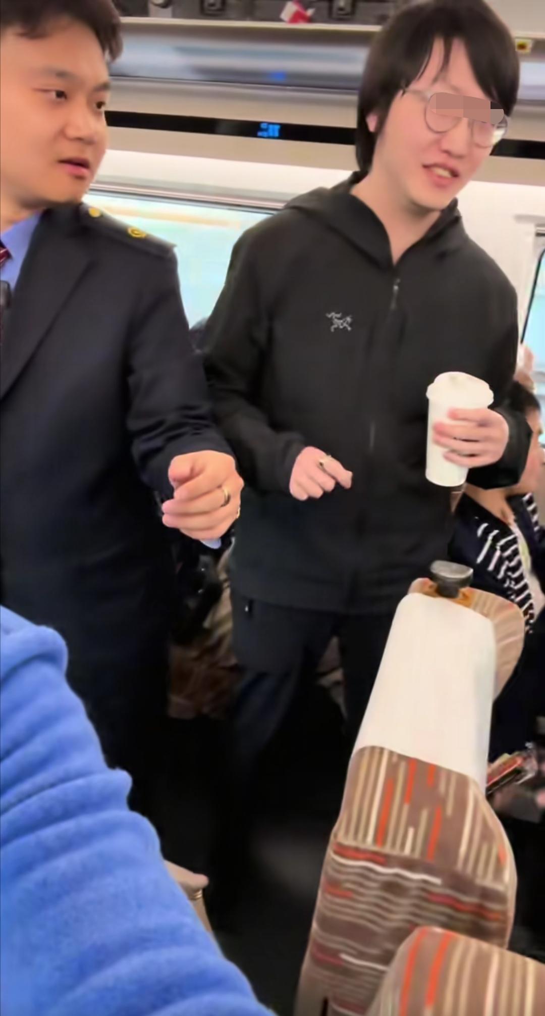 4月6日,郑州至上海的列车上,女子坐在自己座位上,一对情侣被她隔开了,情侣想挨在